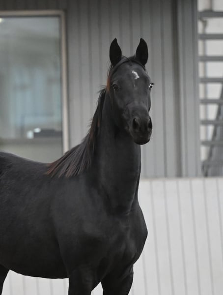 For sale is a 3-year-old mare by Total McLaren, currently still on summer pasture and ready for her further journey in sport. This young lady already impresses with outstanding basic gaits, a correct conformation, and her open, willing-to-learn nature. She is healthy, familiar with the handling of a lungeing system, as well as loading and traveling in a trailer – a solid foundation for further training has been laid. What makes her particularly interesting is her pedigree on the maternal side with noble Akhal-Teke blood. This extraordinary breed is known for: • enormous toughness and endurance • a natural willingness to perform • quick understanding • and a sensitive, people-oriented character In the athletic combination with the modern dressage blood of Total McLaren, an exciting perspective arises for the ambitious rider – whether in classical competition sport or for the demanding leisure rider with an appreciation for quality and character.