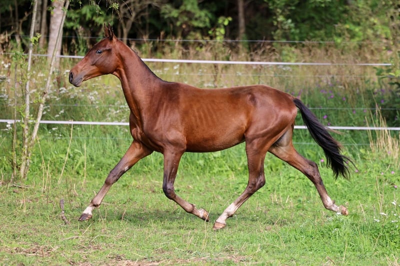 **For Sale: Stunning Akhal-Teke Stallion** We are pleased to present an exceptional young Akhal-Teke stallion, born in 2024. This magnificent specimen stands out with his captivating dark bay coat and impressive stature, measuring 148 cm at the withers. Our stallion is a promising horse, perfect for dressage. With his gentle character and intelligence, he is ideal for both experienced riders and those looking to embark on a training journey. If you are looking for an elegant and talented companion, do not hesitate to contact us for more information. This Akhal-Teke is ready to become your ideal partner in the world of equestrianism!