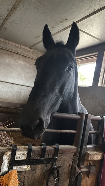 Zum Verkauf steht Karino ein am 18.04.2008 geborerener Alt Oldenburger Rappe im Barocktyp stehend. Für ihn wird ein Platz gesucht, mit Erfahrung im Umgang mit schwereren Pferderassen, wichtig ist eine konsequente und klare Führung. Derzeit steht er in einer reinen Wallachherde & ist dort Herdenchef sehr souverän und fair. Er ist geritten, Halle, Platz & Gelände. Bodenarbeit und auch Tricks sind für ihn kein Fremdwort. Er ist barhuf Er ist regelmäßig entwurmt, geimpft und dem Pferdezahnarzt vorgestellt. Zudem wird er regelmäßig dem Schmied vorgestellt. Karino ist ein Menschenbezogener Wallach, der aber eine klare Führung benötigt. Man muss dazu sagen er ist Kolik operiert, seitdem traten keine Beschwerden mehr auf. Equidenpass ist vorhanden. Wird mit Zubehör abgegeben. Platz vor Preis, da der Besitzerin ein gutes erfahrenes Zuhause sehr wichtig ist. Wird wegen Krankheit seitens der Halter abgegeben. Er wird nicht an Reitschulen oder Händler abgegeben! Bei Interesse gerne melden 🙋🏼♀️ Gebe dann die Kontaktdaten weiter!