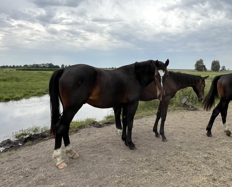For sale is a promising two-year-old Oldenburg gelding, born on May 2, 2023. Key data: - Breed: Oldenburg - Gender: Gelding - Color: Dark brown - Date of birth: May 2, 2023 - Expected height: approx. 165 cm Description: This young gelding impresses with his great type, correct conformation, and very good basic gaits. He has an honest, people-oriented character, is extremely easy-going, and brings a lot of joy in daily handling. From the beginning, he has been regularly and lovingly worked with on the ground, knows the basics of foal training, and always shows himself to be cooperative – without being spoiled. A true young talent with the best prerequisites for all disciplines – whether leisure, dressage, or driving training – this gelding has everything one desires from a versatile riding horse. Further information and viewing available upon request. Location: Hengstweide Wesermarsch Price: €7400 Contact: 015228008206 or sdiers@web.de We look forward to your message!
