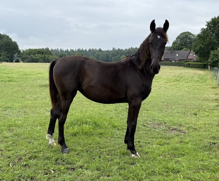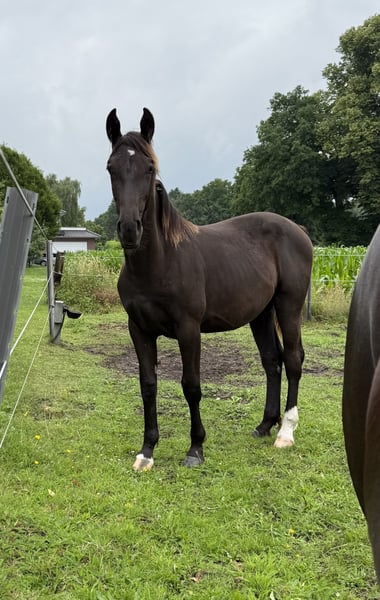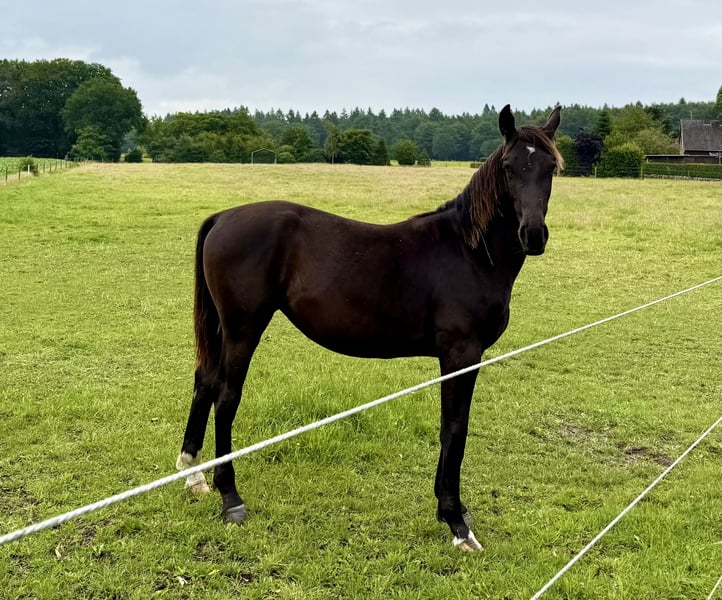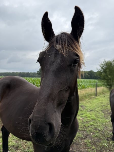 For sale is a stunning one-year-old Oldenburg mare in the coveted black color – a true eye-catcher with a lot of charisma and potential for the future! Pedigree Sire: "Premium Stallion Dedo / Der Alte Oldenburger / Lord II Dam: "Uncja / Basza / Deport With this proven and performance-oriented pedigree, this young lady has the best prerequisites for sport and leisure. Profile: ▪ Born: May 2024 ▪ Gender: Mare ▪ Color: Black ▪ Breed: Oldenburg ▪ Height: will be large-framed (estimated final height approx. 170–175 cm) Description: This young lady already impresses with her great presence and a clear, expressive type. She captivates with a correct foundation, powerful build, and expansive, natural basic gaits – ideal for dressage or as a high-quality leisure partner horse. Already halter-trained, she shows herself to be sweet, well-behaved, and very people-oriented in daily handling. She is trusting and calm, while being age-appropriately curious – an absolute gem all around! Location: Neerstedt Only to be given into good, nurturing hands. Interested? For more information, pictures, or a personal meeting, we look forward to your message or call at: Braaklander Hof, Tel: 01522 8008206 Invest in your horse of tomorrow today – with this young black mare, a bright future awaits you!