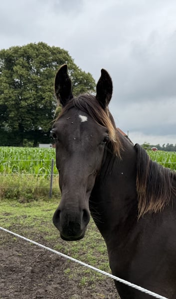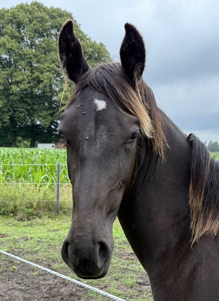 Te koop is een prachtige, eenjarige Alt-Oldenburger merrie in de gewilde zwartkleur – een echte blikvanger met veel uitstraling en toekomstpotentieel! Afstamming Vader » Prijzenhengst Dedo / De Oude Oldenburger / Lord II Moeder » Uncja / Basza / Deport Met deze bewezen en prestatiegerichte afstamming heeft de jonge dame de beste voorwaarden voor sport en recreatie. Profiel: ▪ Geboren: mei 2024 ▪ Geslacht: merrie ▪ Kleur: zwart ▪ Ras: Alt-Oldenburger ▪ Grootte: zal groot worden (geschatte eindhoogte ca. 170–175 cm) Beschrijving: Deze jonge dame overtuigt nu al met een geweldige aanwezigheid en een duidelijk, expressief type. Ze valt op door een correct fundament, krachtige lichaamsbouw en ruime, natuurlijke basisgangen – ideaal voor dressuur of als hoogwaardige recreatiepartner. Ze is al halstergewend en toont zich in het dagelijks omgaan als lief, braaf en zeer mensgericht. Ze is vertrouwensvol en rustig, terwijl ze leeftijdsgebonden nieuwsgierig is – kortom, een echte schat! Locatie: Neerstedt Alleen in goede, ondersteunende handen beschikbaar. Geïnteresseerd? Voor meer informatie, foto's of een persoonlijke kennismaking horen we graag van je via een bericht of een telefoontje naar: Braaklander Hof, Tel: 01522 8008206 Investeer vandaag in jouw paard van morgen – met deze jonge zwartmerrie staat je een stralende toekomst te wachten!