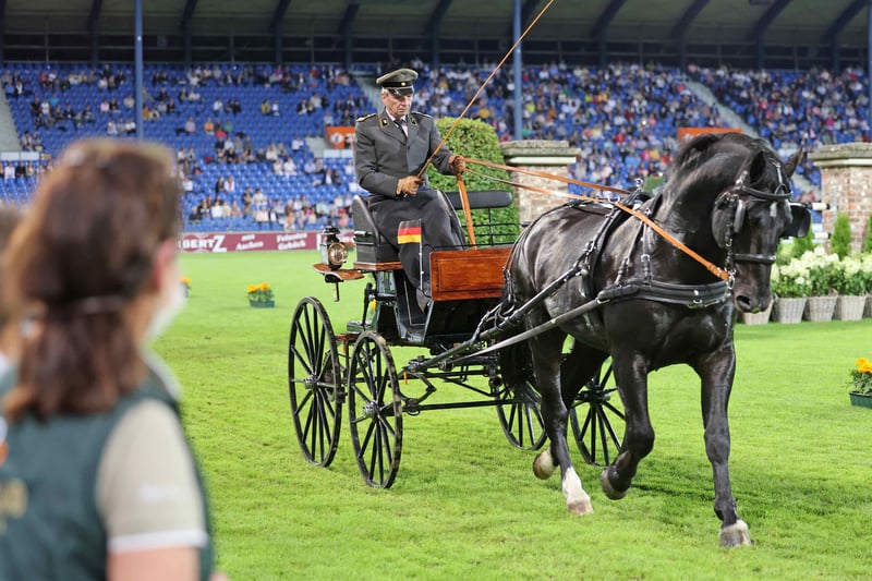 Laurin - der Zwergenkönig. Wie aus einer anderen Zeit verkörpert Laurin den Typ des Destriers, die einst die Elite-Ritter-Rösser waren. Die mehr als 1000-jährige Zuchtgeschichte dieser Ritter-Rösser, wie einst von Leonardo da Vinci und Albrecht Dürer gezeichnet, hat ihre Wurzeln in den Regionen, die heute Westfalen, Niedersachsen und Thüringen genannt werden. Laurin beweist, dass diese Kriegsrösser auf denen die Sportpferdezucht einst aufbaute, sich durchaus neben den modernen Sportpferden erfolgreich behaupten können und vor allem für alternative Pferdesportarten geeignet sind. Laurin ist im Fahrsport bis M siegreich und hoch platziert, in der ersten internationalen S** erreichte er eine Reserveplatzierung im Kegelfahren. Doch auch unter dem Sattel zeigt er sein Können und ist mit Amateuren bis L** hoch platziert. Laurin war Körsieger der Körung 2017 des Zuchtverbandes des Ostfriesischen und Alt-Oldenburger Pferdes. Die HLP für diesen Verband hat er über den offenen Turniersport erreicht mit 8,3. Im Jahr 2024 wurde Laurin vom Weser Ems Verband für das Zuchtbuch des Deutschen Barockreitpferdes gekört mit dem Prädikat der Verbesserung der Zucht. Für dieses Zuchtbuch hat Laurin die HLP ebenfalls über den offenen Sport erfüllt mit 5 Siegen und Platzierungen unter den ersten 3 auf M-Niveau. Im Jahr 2025 wurde er noch für den AES gekört. Rösser dieser Erscheinungsform zieren die Berliner Quadriga, Leonardo da Vinci und Albrecht Dürer haben das "Große Pferde" gezeichnet und das Fresco des Grabmales des Sir John Hawkwood aus dem 14. Jahrhundert zeigt die Erscheinungsform. Die Zuchtgeschichte reicht zurück bis in das Mittelalter. In dieser Zeit hat der Deutsche Orden das sogenannte "Große Pferd" gezüchtet. In Ostpreussen beginnend im 13. Jahrhundert und dies basierend auf Rössern vor allem aus dem heutigen Thüringen und Norddeutschland. Auf der Zucht dieser Ritterpferde bauen sogar die Trakehner auf. Es war eine Selektion über 1000 Jahre und Graf Anton Günther von Oldenburg hat dies in das erste Oldenburger Zuchtbuch geführt. Rekonstruktionen anhand von Abbildungen und Knochenfunden dieser einst in ganz Europa begehrten Elite-Rösser zeigen, dass sich die letzten Nachfahren in den heute als Schweres Warmblut bezeichneten Rassen wieder finden. Die Erfolge von Laurin an der Kutsche und im Breitensport unter dem Sattel zeigen, dass solche Rösser selbst in Zeiten der modernen Sportpferde nicht fehl am Platz sind. Nach einer erfolgreichen Zeit im Fahrsport hat Laurin unter dem Sattel die Mannschaft der Talentinitiative Berlin zum Berliner Vizemannschaftsmeister geführt im Jahr 2024. Diese Zucht der einstigen Elite-Ritter-Rösser war die Basis der deutschen Sportpferde. Stark, gesund, unerschütterlich und verlässlich und dies gibt Laurin an seine Nachkommen weiter. Sein Vater Lotus zeigte sich 2024 anlässlich eines Fotoshootings im Gestüt Graditz im Alter von 27 Jahren mit bester Gesundheit. Wie es bereits vor Jahrhunderten erfolgte, wurden diese schweren Kriegsrösser immer wieder mit Edelblut angepaart. Bei Lotus ist dies der Vollblüter Grottensee xx und über Epomeo findet sich der Araber Wesir ox in Laurins Pedigree. Laurin ist einer von drei gekörten Söhnen des Lotus. Unter dem Sattel war Laurin 2024 der erfolgreichste gekörte Hengst der Rasse Schweres Warmblut und dies nach 6 Jahren Fahrsport. Laurin ist WFFS-frei, ECVM-frei, PSSM-1 frei, Röntgenklasse I, FIT negativ. Er ist sehr umgänglich, weiß sich aber zu präsentieren. Laurin hat anlässlich der Eröffnungsfeier des CHIO Aachen 2021 die Rasse repräsentiert unter der Fahne des Niedersächsischen Landgestütes Celle mit Herrn OSM Müller an den Leinen. Laurin beweist immer wieder seine leichte Bedienbarkeit durch Amateure. Er war nie lahm, hatte keine Verdauungs- oder Atemwegsprobleme. Er hat ausgezeichnete Zähne und gute Hufe. All das vererbt er an seine Nachkommen. Besonders gut wird die Anpaarung mit Warmblutstuten. Hier bringt sich Laurin dezent in der Weise ein, dass die Gliedmaßen gerade und korrekt werden, sehr viel Schub aus der Hinterhand genetisch weitergegeben wird und sich sein umgängliches Wesen durchsetzt. Die Nachkommen egal ob mit Warmblut oder Schwerem Warmblut angepaart entwickeln sich zu starken und dennoch eleganten Gewichtsträgern. Nicht verwunderlich, denn diese Rösser mussten bis 180 kg Ritter plus Rüstung und eigenen Schutz tragen und dabei dennoch agil, schnell und ausdauernd sein. In Video 4 ist sein Sohn Landolin zu sehen, jetzt schon ein kapitales Ross aus einer Warmblutstute von Summertime T. x Lesotho Holst. Laurin vererbt grundsätzlich sein stabiles Fundament und seinen guten Charakter ebenso wie sein glänzendes Fell und markanten und dennoch schönen Kopf mit offenem Blick. Die Trächtigkeitsrate und Abfohlrate gesunder Fohlen liegt mit TG über 80%. Es wird die Besamung in Stationen des LG Celle empfohlen. 200 € fällig bei Besamung und 300 € bei Trächtigkeit. Zudem steht Laurin auf dem Kryxenberg in der Saison 2025 im Natursprung zur Verfügung.