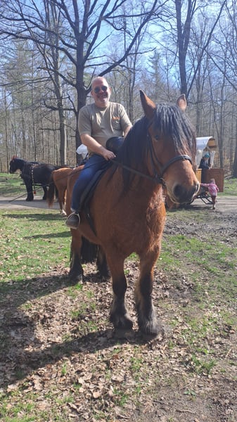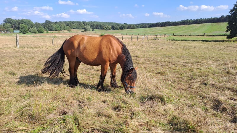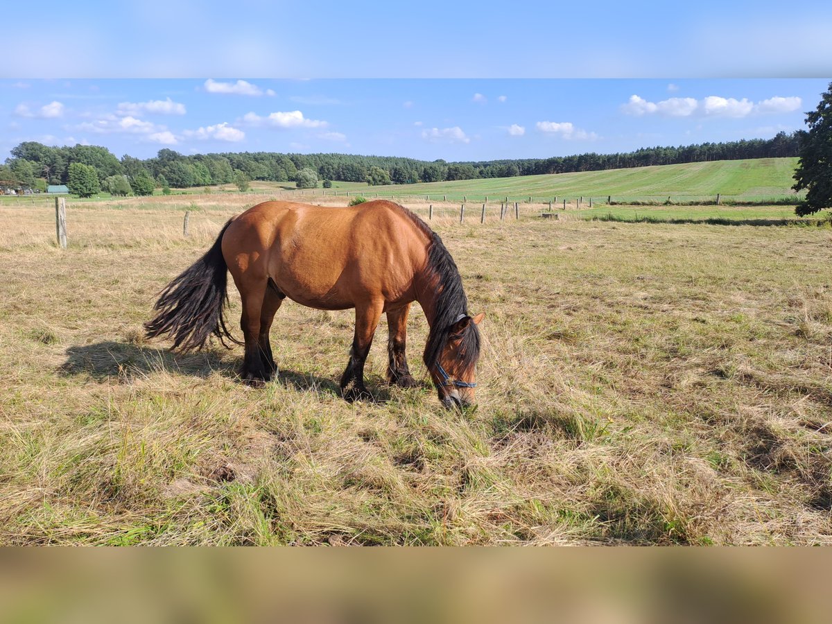 Ich verkaufe meinen sehr liebes Kaltblut ausschließlich in gute Hände; am Besten wäre es wenn er in eine kleine Kaltblutherde kommt und er gearbeitet wird. Neben selbst für ein Kaltblut enormer Kraft, ist er sehr arbeitsbereit und nimmt neue Routinen gut an. Seit 2018 ist er überwiegend in der Reittherapie mehrfach in der Woche im Einsatz. Er stellt sich sehr gut darauf ein, welches Kind auf ihm sitzt. Ausserdem ist das Reiten auf Platz, Halle und Gelände insbesondere im Arbeitsschritt und Trab sehr angenehm. Gefahren wurde er noch nicht, aber er zieht gut (z.B. Egge, Reifen usw.) und ohne Schwierigkeiten; er kennt es im Geschirr eingeschnallt zu sein und ist definitiv für große, schwere Kutschen sowie zum Holzrücken geeignet. August ist gekört und war Staatsprämienfohlen. Das Pferd ist in diesem Stall geboren und in einer Kaltblutherde stehend, i.d.R. Tag und Nacht draussen. Er ist absolut verträglich und verzeiht auch mal einen Fehler des Reiters. Beim Hufschmied (das Pferd ist Barhufer) macht er super mit. Auf und vom Hänger klappt problemlos.
