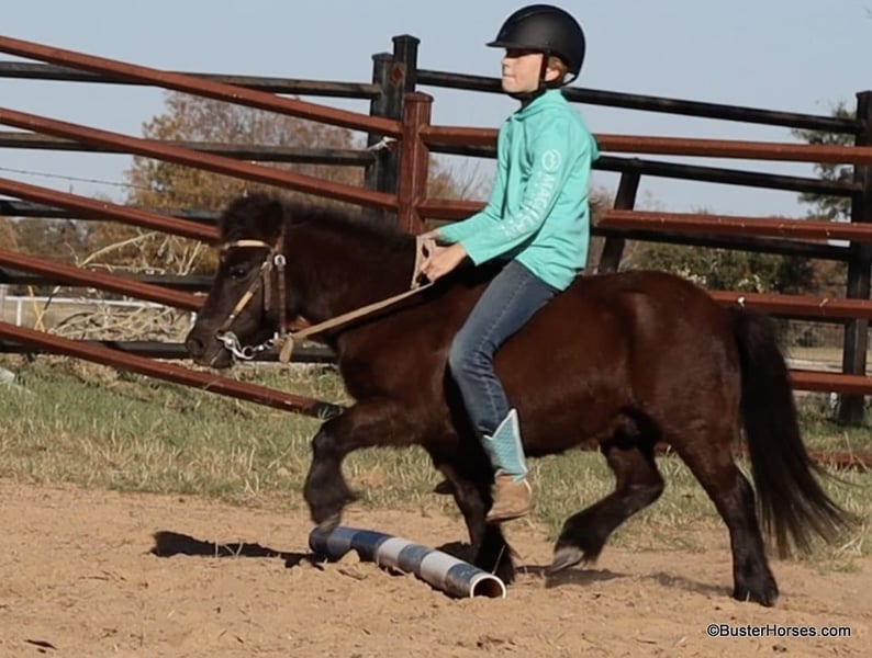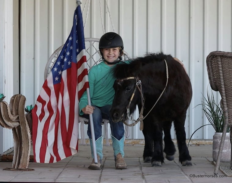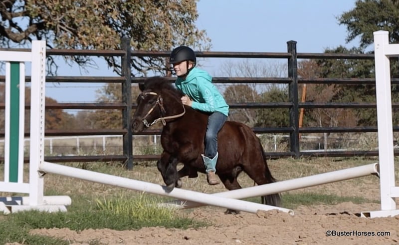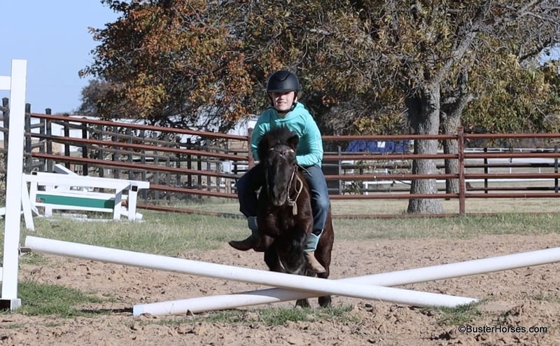 ONLINE AUCTION Place your bids at www.PlatinumEquineAuction.com Starting Bid $3500 Auction ends December 22nd, 2024 Need a new saddle? Check out White Rock Saddles on our website or Facebook! “Wells” – 8.2H, (34”) 12 year old black mini pony gelding…. If you want to see your kids (or grandkids) all out there in the yard enjoying a pony riding from the playground, to the barn, to the pond, then to their playhouse – playing games with the pony in tow….then you have to get them a GOOD pony. Not all of these little tiny ponies are the same! We get lots of little ponies like this that are gentle and will leadline well, but the ones that will both leadline the little toddlers, AND ride around…the ones that will trot and lope, and guide around well for the bigger kiddos too – those ponies are pretty rare! We are lucky to get a handful of ponies like this each year and we go through a lot of little ponies that are not so easy and good-minded….finding these special little ones! Wells is so fun and easy and not remotely intimidating! He is big boned, well put together, and stout made. He is thick and strong enough for the bigger kids to ride too!!! He guides around easily one-handed and will walk all day if that’s all you want to do – he will also happily trot and lope circles just like a big horse! He is a pleasant little guy, with absolutely no rotten little pony attitude – he is adorable. Since the day we got this pony my daughter asks to take him literally absolutely everywhere, if we are hooked up to a trailer, she is trying to load Mr Wells to go with us. He has been on many runs down the trail, has been to many dinners, been through several drive-thrus, been to several family gatherings, been to every park in town – if we are hooked up to a trailer she is loading this one and dragging him along! He hops right on and off the trailer, and will stand quietly all day. He has practically lived on the trailer several days with us … and he eats and drinks well. Wells will stand quietly tied anywhere or will relax and take a nap on the trailer. He is a super cute little jumper, and LOVES it whether it’s a log out on the trail or a real jump in the arena! He is a cute little mover, and would be absolutely adorable for a tiny little kid to do the ground rails, the entry level dressage tests, or walk-trot cross rails on!!! No vices or bad habits – easy to catch, even out in the pasture or in a pen of wild ponies! He is good with his feet and loves a bath! Please call anytime for more information Buster Horses Ashley 214-605-7174 Wells is located in Weatherford, TX – one hour from Dallas / Fort Worth International Airport. He is an easy day trip or fun overnight trip to come try out, from anywhere! We are experienced knowledgeable sellers and we can help with quickly arranging affordable shipping to any buyer’s location – we have experience shipping horses worldwide – including regularly to Hawaii, Canada, Mexico, Europe, and South Africa. Go to our Facebook page Buster Ranch and check our website for buyer reviews, for more videos, additional info, etc: https://busterhorses.com/Wells ONLINE AUCTION Place your bids at www.PlatinumEquineAuction.com Starting Bid $3500 Auction ends December 22nd, 2024 Need a new saddle? Check out White Rock Saddles on our website or Facebook!