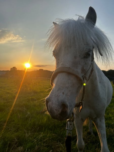 Zum Verkauf steht ein charmantes American Miniature Horse Wallach, geboren im Jahr 2019. Mit einem Stockmaß von 100 cm und seiner auffälligen Farbe und mit seinem Blau in einem Auge ist er ein echter Blickfang! Dieser liebevolle und gut erzogene Wallach eignet sich hervorragend zum Fahren und bringt viel Freude und Spaß mit sich. Lio(so nennen wir ihn) ist seit Fohlenalter bei uns auf dem Ponyhof. Er kennt es, kleine Kinder auf seinem Rücken zu tragen und ist dabei eher flott als stur. Außerdem kann man ihm auch unheimlich viel beibringen. Er stand jetzt über ein Jahr eine Mädchen zur Verfügung, und sie hat ihm viel beigebracht. Er ist kerngesund, und außer seiner regelmäßigen Tetanusimpfung hat er noch nie einen Tierarzt kennen gelernt. Ich wünsche mir ein zu Hause für ihn, wo er noch viel gefördert wird und vielleicht vor einer kleinen Kutsche geht. Die Kinder hier hatten viel Spaß, unter anderem mit Inlinern mit ihm zu fahren. Im Sommer ist der Tag und Nacht auf der Weide. Natürlich sollte bei so kleinen Ponys die Weide nicht zu fett sein. Momentan ist er auch etwas dick. Ich verkaufe ihn nur, da ich leider nicht jünger werde und ich die Anzahl meiner Ponys langsam etwas verringern muss. Sie können ihn gerne kennen lernen, wofür ich allerdings 30 € berechne, da ich die Erfahrung gemacht habe, dass einige Leute so ein Kennenlernen als reines Ausflugsziel nutzen. Ich freue mich auf Anfragen. PS: gegen einen kleinen Aufpreis bekommt er Zubehör mit