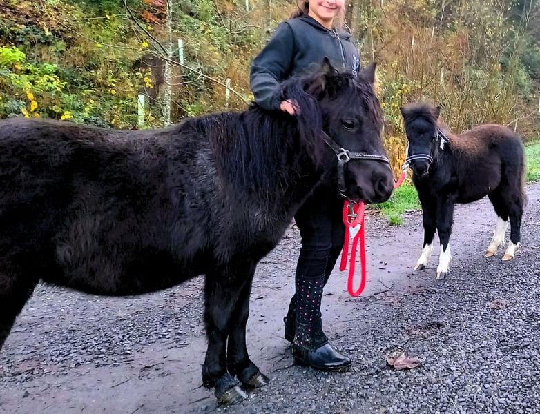 Schweren Herzens verkaufen wir unsere schöne 6-jährige, schwarze, reinrassige American-Mini-Horse-Stute "Surprise" (Stockmass 95cm), sehr lieb im Umgang, an Kinder gewöhnt, gefahren (Sulky Trabrennen), guter Charakter, verladefromm u. gelände-/verkehrssicher, robust & gesund, geimpft, gechippt und entwurmt, Hufe gemacht. Surprise ist an Freilauf- und Gruppenhaltung gewohnt mit anderen Ponys und Kleinpferden. Sie hat zurzeit auch noch ein abgesetztes Hengst-Fohlen (geb. 2024), das auch zu verkaufen ist. Die beiden werden einzeln oder zusammen an einen schönen Platz abgegeben, wo sie gefordert und gefördert werden sowie ein artgerechtes Leben in Freilauf- und Gruppenhaltung geniessen dürfen. Verkaufspreis für die Stute 3100.- SFr. Verkaufspreis für das Hengstfohlen 1200.- SFr. Gerne können die zwei Ponys in Gettnau LU besucht werden.