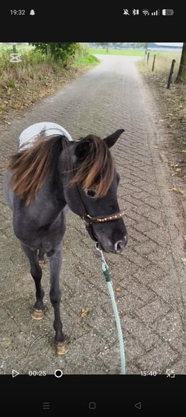 Hoiii Dit is Bonny Bonny is een amirikaans mininpaardje Hengst Met NAS stamboek van 25-06-2024 85cm en groeit nog Hij is mooi slank gebouwd hoog en recht op de beenen met een mooie lange slanke nek en natuurlijk ook een dikke bos maanen en staart Hij is een leuk bizonder kleurtje (zwart schabrakbont) en gestreepte hoefjes Hij gaat bij ons netjes mee naar de hoefsmid dit vindt die soms nog lastig maar wordt aan gewerkt Hij is nog groen maar wel heel braaf loopt altijd netjes mee ook aan de Longe tilt zijn hoefjes netjes op kan pasjes achteruit loopt makkelijk de trailer op kan langere tijd zonder toezicht veilig vast staan verkeer vindt die nog wel spannend maar daar werken we ook aan met lekker wandelen langs de weg. Kwa karakter is die heel lief en nieuwschierig en als die iets eng vindt komt die ook naar je toe voor hulp Bonny is wel een paardje die eerst een beetje aan je moet wennen maar daarna doet die ales voor je (zijn achtergrond is bekend bij ons) ik zie Bonny graag naar iemand gaan die het egt leuk vindt om met minies te werken en later ook misschien wat met hem wil gaan bereiken Hij is goed gesocialiseerd hij staat in een kleine kudde van 6 minies hij is honden katten koeien kippen gewend (Bonny is geen kinder pony, rij pony, weidemaatje of huisdier) Voor meer info stuur gerust een berichtje De prijs is bespreekbaar bij het juiste huisje Gaat aleen weg naar een 5⭐ huisje Mvg Elise van der vegt