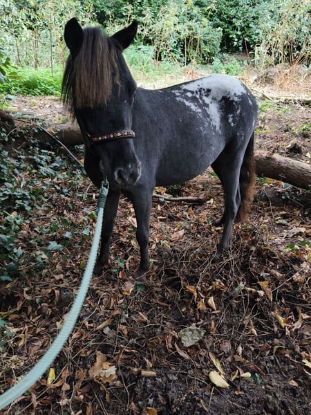 Hallo, das ist Bonny. Bonny ist ein amerikanisches Miniaturpferd Hengst mit NAS-Stammbaum, geboren am 25.06.2024, 85 cm groß und wächst noch. Er ist schön schlank gebaut, hoch und gerade auf den Beinen, mit einem schönen langen schlanken Hals und natürlich auch einer dicken Mähne und einem dichten Schwanz. Er hat eine interessante Farbe (schwarzes Schabrackbunt) und gestreifte Hufe. Er geht bei uns brav zum Schmied, findet das manchmal noch schwierig, aber wir arbeiten daran. Er ist noch grün, aber sehr brav, läuft immer ordentlich mit, auch an der Longe, hebt brav seine Hufe, kann rückwärts gehen, läuft problemlos in den Anhänger und kann längere Zeit ohne Aufsicht sicher festgebunden stehen. Verkehr findet er noch spannend, aber auch daran arbeiten wir mit schönen Spaziergängen am Straßenrand. Was den Charakter angeht, ist er sehr lieb und neugierig, und wenn er etwas beängstigendes findet, kommt er zu dir für Hilfe. Bonny ist ein Pferd, das sich zuerst etwas an dich gewöhnen muss, aber danach tut er alles für dich (seine Vorgeschichte ist uns bekannt). Ich würde mich freuen, wenn Bonny zu jemandem kommt, der wirklich Spaß daran hat, mit Minis zu arbeiten und vielleicht später auch etwas mit ihm erreichen möchte. Er ist gut sozialisiert und steht in einer kleinen Herde von 6 Minis. Er ist an Hunde, Katzen, Kühe und Hühner gewöhnt. (Bonny ist kein Kinderpony, Reitpony, Weidegefährte oder Haustier.) Für weitere Informationen schick gerne eine Nachricht. Der Preis ist verhandelbar bei dem richtigen Zuhause. Er geht nur in ein 5⭐ Zuhause. Mit freundlichen Grüßen, Elise van der Vegt