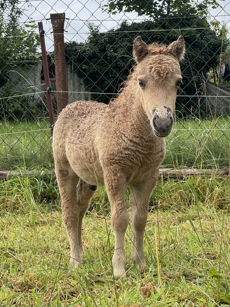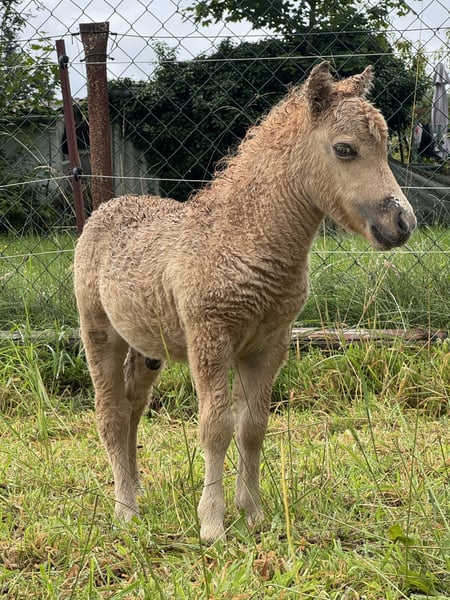 AQM Fames Surprise Blessing, geboren: 2.7.2025, Farbe: Dunalino Vater: World Champion Los Arboles Idols Claim To Fame Mutter: Premiers Special Blessing Endmaß ca 32-33“ Surprise ist eindeutig die süßeste Versuchung, seit es Miniaturpferde gibt. Er ist korrekt, hat einen fantastischen Charakter und… Locken! Wo die herkommen, keine Ahnung, aber sie machen ihn zu etwas ganz besonderem. Er ist das vierte Fohlen aus dieser Anpaarung und alle sind sie ausgesprochen gelungen. Sein Vater Fame ist World Champion und auch seine Mutter war in Europa auf vielen Shows vorne mit dabei. Seine Geschwister sind erfolgreiche Fahr-, Therapie- und Zuchtpferde und auch dem kleinen Surprise stehen alle Wege offen. Ein Mini für alles, was Spaß macht. Für mehr Infos, Fotos und Videos folgt uns gerne auch auf Instagram: aquamarineminiatures