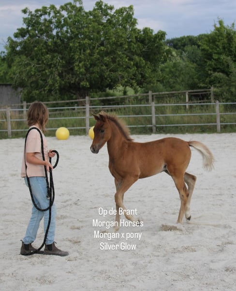 This year, we welcomed five beautiful colt foals. All of them are looking for a new home. Their sire is our American Morgan Horse stallion Schaenzer’s Silver Lining, a gelding with a very gentle and cooperative temperament. RESERVED 100% Morgan Horse ODB Silver Smoke (Smokey) Born May 3, 2025 Gelding Mother: EMMH Beloved Mulan Sire: Schaenzer’s Silver Lining Color: Smokey Silver Black 50% Morgan Horse, 50% Pinto Silver Glow Born May 6, 2025 Gelding Mother: Indy Sire: Schaenzer’s Silver Lining Color: Silver Bay 100% Morgan Horse ODB Silver Willow Born May 27, 2025 Gelding Mother: BMH Turbo Twinky Sire: Schaenzer’s Silver Lining Color: (Silver) Red Dun 100% Morgan Horse ODB Choco’s Red Velvet Born June 1, 2025 Gelding Mother: BMH Belle Choco Sire: Schaenzer’s Silver Lining Color: Chocolate 100% Morgan Horse ODB Kick Up The Dust Born June 24, 2025 Gelding Mother: Landmaat’s Milady Sire: Schaenzer’s Silver Lining Color: Red Dun 100% Morgan Horse ODB Silver Blossom Born May 10, 2024 Mare Mother: Landmaat’s Milady Sire: Schaenzer’s Silver Lining Color: Red