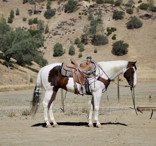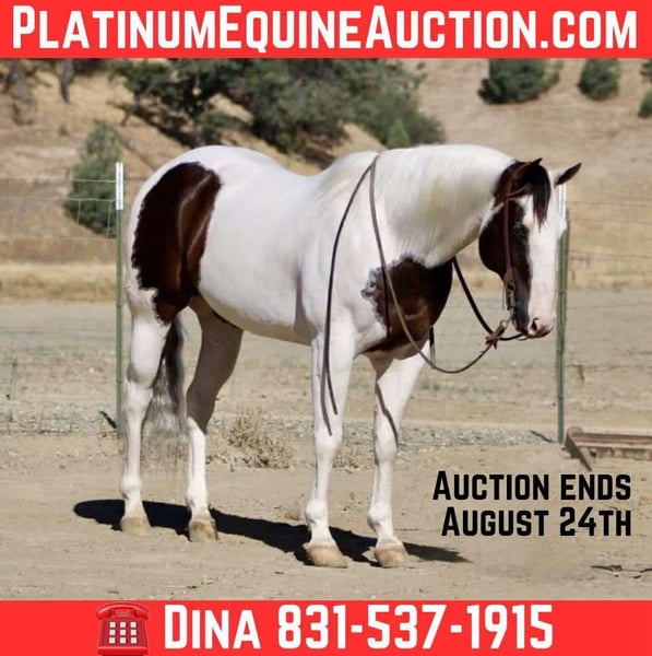 ONLINE AUCTION Place your bids at www.PlatinumEquineAuction.com Starting Bid $3500 Auction ends August 24th, 2025 Need a new saddle? Check out White Rock Saddles on our website or Facebook Aye Aye Pirate – The Treasure You’ve Been Hunting For! Drop anchor—your dream horse just surfaced. Meet Aye Aye Pirate, or just Pirate to his crew—a 10-year-old, 14.3-hand paint gelding with the kind of ride, temperament, and good looks that make him a rare treasure. Pirate is truly one of the gentlest, most dependable horses we’ve had the pleasure of offering. He’s kind, patient, and incredibly forgiving—making him an ideal choice for riders of all levels. Whether you’re brand new to horses, getting back in the saddle after years away, or just want a steady mount you can trust in any setting, Pirate will take care of you every step of the way. On the trail, he’s as solid as they come. He’s confident, sure-footed, and careful without being sluggish. He’ll navigate water crossings, rocky terrain, steep hills, narrow bridges, downed trees, tarps, tires, and pool noodles like a seasoned scout. And he does it all without hesitation or drama—ears forward, eyes soft, and completely tuned in to his rider. Pirate doesn’t just tolerate the trail—he thrives on it. He’s also a total dream to ride down the road. Cars, trucks, barking dogs, bicycles, strollers—you name it—he’s seen it and walked right on by with a quiet confidence that’s hard to find. He’ll go out alone or in a group and never loses his cool. In the arena, Pirate keeps things simple and fun. He lopes off soft, neck reins easily, stops off your seat, and moves right off your leg. He’s smooth, correct, and easy to ride—even for beginners—but he’s broke enough to keep seasoned riders smiling. Need a little style? He’ll roll into a smooth spin that’ll make you grin. He’s been used on the ranch too—gathering cattle, opening gates, branding and roping. But what truly makes Pirate special is his heart. He’s got that rare “babysitter” brain paired with enough buttons to still be enjoyable for a confident rider. He’s sweet without being dull, willing without being pushy, and always ready to meet you at the gate. In the barn, he’s just as easy. Catches without a chase, saddles and bridles without a fuss, great for the farrier, and loads and hauls like a seasoned traveler. Stall or pasture, alone or with others—he’s happy wherever you put him. So if you’ve been searching for that once-in-a-lifetime gelding—the one you can trust with your kids, your grandma, your cowboy friend, or just yourself on a solo sunset ride—Pirate is the one you’ve been waiting for. Located in Paicines, CA 📞 Call or text Dina at Longhorn Ranch – 831-537-1915. ONLINE AUCTION Place your bids at www.PlatinumEquineAuction.com Starting Bid $3500 Auction ends August 24th, 2025 Need a new saddle? Check out White Rock Saddles on our website or Facebook