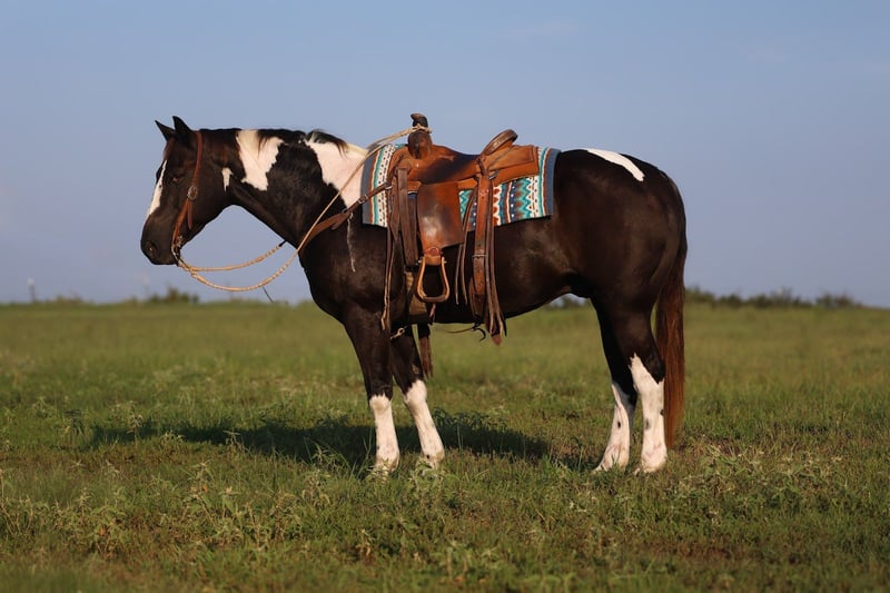 🍁𝒕𝒉𝒆 𝐅𝐀𝐋𝐋 𝑺𝒑𝒆𝒄𝒕𝒂𝒄𝒖𝒍𝒂𝒓🍁 Happening now thru MONDAY | SEPTEMBER 22nd - Available EXCLUSIVELY on HorseBid's website! For more details and to register visit: www.Horsebid.com CONSIGNOR CONTACT: Coyote Hollow Ranch LLC 209-342-7061 LOCATION: Mount Vernon TX BREED: Paint REGISTERED: No COLOR: Black and white HEIGHT: 15 AGE: 9 GENDER: Gelding Meet Ted, a seasoned black and white paint gelding who is the definition of a dependable ranch partner. This older gentleman’s horse is as solid and trustworthy as they come, with years of real-world ranch work under his belt. He’s a veteran at doctoring sick cattle, branding calves, sorting and penning, and loading trucks—always steady, always reliable. Ted is the kind you can leave turned out for a month or even six, then saddle up and ride off without a worry. He never gets fresh, fast, or anxious—always the same honest horse every single time. Out on the trail, he’ll cover any terrain you point him at, sure-footed and confident, with no hesitation. Nothing rattles this gelding. He’s completely desensitized to tarps, flags, traffic, and all the sights and sounds that might unsettle a lesser horse. Ted is also a gentleman to bathe, shoe, haul, and handle. He gets along well with other horses in the pasture and is just as content in a stall. If you’re looking for a true ranch veteran and a safe, solid partner you can count on every ride, Ted is your horse.