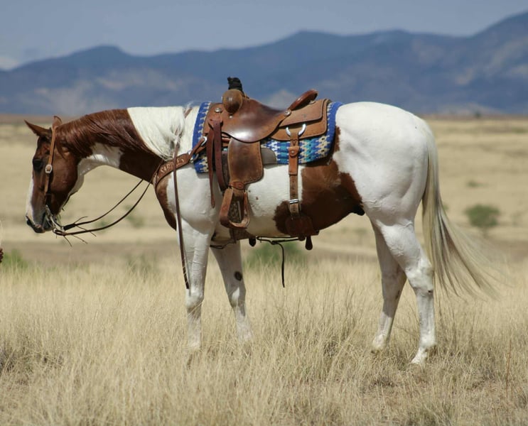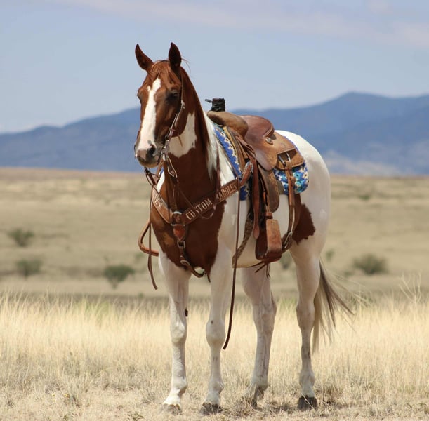 ONLINE AUCTION Place your bids at www.PlatinumEquineAuction.com Starting Bid $3500 Auction ends August 3rd, 2025 Need a new saddle? Check out White Rock Saddles on our website or Facebook Hard On The Rocks aka Rip is a Beautiful, Seasoned Sorrel Tobiano Paint, that is a 2015 model, reg APHA, gelding that is standing 15.1hh. Rip is a handsome paint gelding with all the experience and heart you could ask for. Rip has been used extensively on the ranch and trails. He’s gathered cattle in big mountain country, crossed rivers, navigated rocky terrain, and he’s no stranger to a long day’s work. He’s also been ridden through town — traffic-safe, calm, and steady no matter the situation. One of Rip’s best qualities? He’s easy to leave off and easy to bring back. Whether it’s been a week or a month, he saddles up quiet and rides off like a gentleman. He’s smooth, easy to ride, and gets along well with other horses in the pasture or on the trail. While he’s good for anyone, Rip does seem to have a soft spot for the ladies — he’s happiest with a kind, quiet rider. If you want a horse that’s been there, done that, and still has plenty of good years ahead of him, Rip is your guy. He is located in Nogales, AZ. Contact Kyle with Thunder Valley Ranch 402-910-6476 with any questions. Shipping is available anywhere in the US. ONLINE AUCTION Place your bids at www.PlatinumEquineAuction.com Starting Bid $3500 Auction ends August 3rd, 2025 Need a new saddle? Check out White Rock Saddles on our website or Facebook