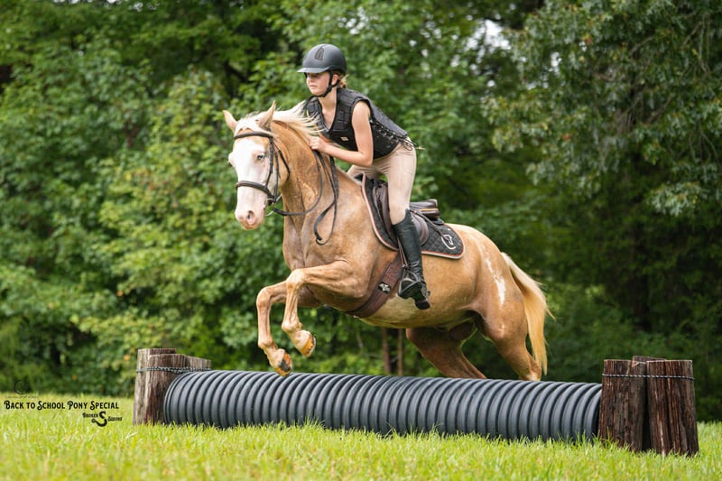 𝐂𝐚𝐫𝐨𝐥𝐢𝐧𝐚 𝐒𝐩𝐨𝐫𝐭 𝐇𝐨𝐫𝐬𝐞𝐬 & 𝐁𝐫𝐨𝐤𝐞𝐧 𝐒 𝐄𝐪𝐮𝐢𝐧𝐞'𝐬 📚𝑩𝒂𝒄𝒌 𝒕𝒐 𝑺𝒄𝒉𝒐𝒐𝒍 𝑷𝑶𝑵𝒀 𝑺𝒑𝒆𝒄𝒊𝒂𝒍📚 Happening now thru MONDAY | SEPTEMBER 1st - Available EXCLUSIVELY on HorseBid's website! For more details and to register visit: www.Horsebid.com CONSIGNOR CONTACT: Carolina Sport Horses & Broken S Equine Kieran 908-645-2127 or Beau 573-303-4087 LOCATION: Clover, SC BREED: Paint REGISTERED: No COLOR: Palomino Paint HEIGHT: 14.1 AGE: 11 GENDER: Gelding Peekaboo is an 11 year old Paint gelding standing 14.1 hands high. This horses resume is as unique as his looks! He has seen a days work on the ranch, packed kids around in lessons, done lots of 4h events, summer camps, and has even gone out fox hunting! This horse is an incredible partner to have when it comes to jumping. He moves like a hunter, with the bravery of a seasoned event horse. He’s the kind of horse that you can enjoy any discipline on and be safe doing it. He’s just as happy being painted and dressed up like a unicorn as he is jumping on the cross country course, or working cattle. In the ring, Peekaboo is straightforward and easy. He has three smooth and comfortable gaits, great brakes, and picks up both leads easily. He is broke very well both English and western. Under English tack he will ride round in the bridle, or on a loose rein. He is schooling first level dressage tests and will jump around a course. Under western tack, Peekaboo has a great neck rein, spin, nice big stop, and lopes off easily. On the cross country course, he is a blast! He is brave, honest, and enjoys being out there. He will always jump, and is happy to help his rider out of a bad spot. On the trails, Peekaboo is a solid citizen. The kids take him out bareback in a halter and ride all over the farm. He will swim, cross streams, ride into town, and is safe in traffic. We have taken him double with the kids in the saddle to ride into town after dinner for ice cream, and he doesn’t blink an eye at a thing. In the barn, Peekaboo is a barn favorite! He is very used to kids, dogs, and other animals running all about. He’s a good boy for all the usual barn tasks, and is a total pleasure to have around. Peekaboo lives outside in a mixed herd of mares and geldings, is easy to catch, and gets along well with others. He’s an easy keeper that has no maintenance or vices. Clean recent vet check on file