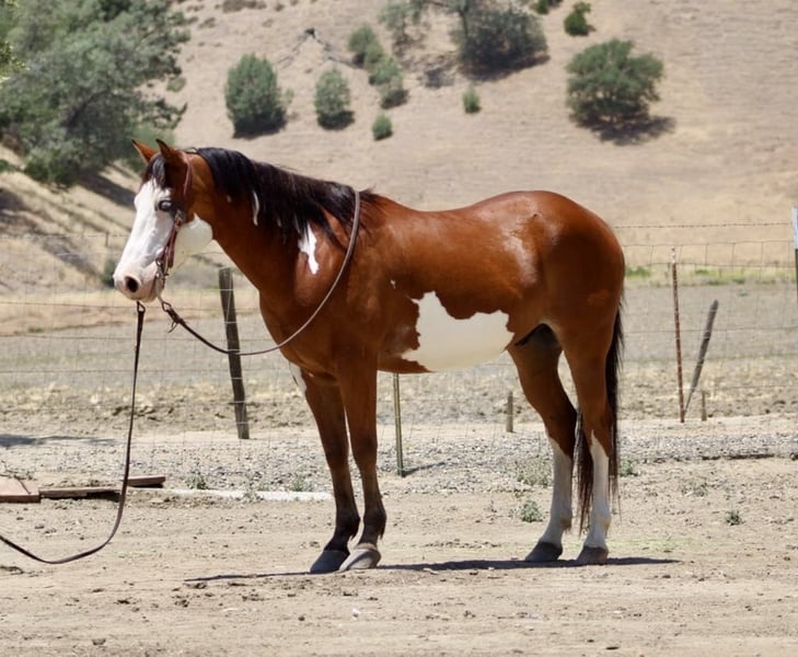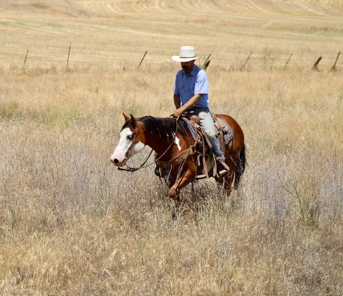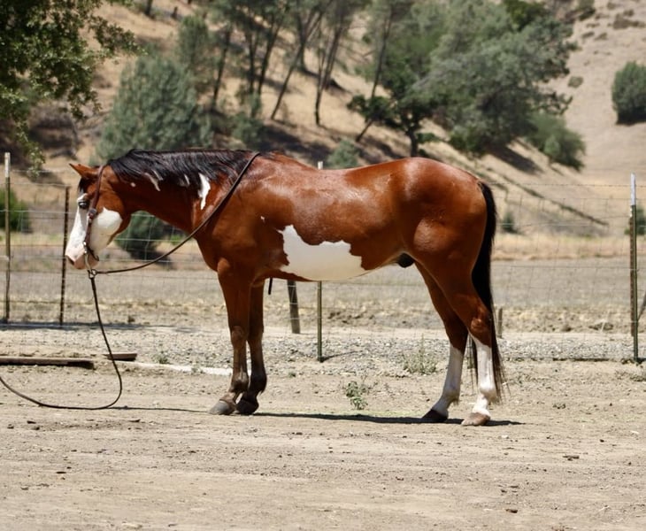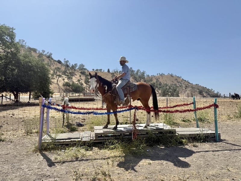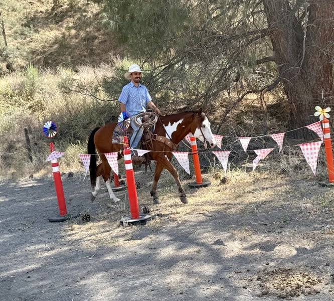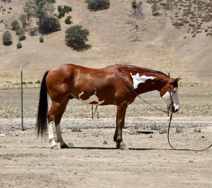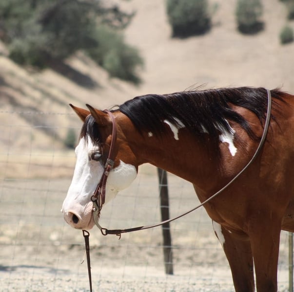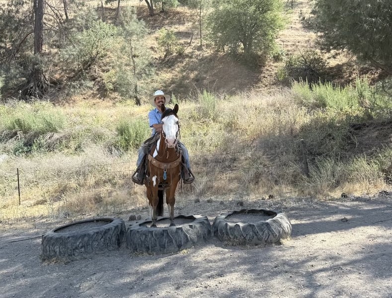 ONLINE AUCTION Place your bids at www.PlatinumEquineAuction.com Starting Bid $3500 Auction ends June 22nd, 2025 Need a new saddle? Check out White Rock Saddles on our website or Facebook! Meet Angus the charming bay over paint gelding who’s as handsome as he is capable! Standing at a perfect 14.2 hands, striking blue eyes and sweet demeanor make him an absolute head-turner. Angus is a reliable and willing partner under saddle. He is a naturally cautious and friendly horse, making him a joy to ride for any level of rider. He’s been trained to ride correctly with a lovely natural headset. He picks up his leads with ease, has a nice, soft stop, and backs up smoothly. Angus’s background as a ranch horse shines through in his versatility. He’s been used extensively for gathering, sorting, and branding cattle, proving his dependability in demanding situations. He’s also a natural in the hills, confidently navigating all types of terrain, from narrow trails to crossing logs and water. He’s seen it all, from flags and tarps to bridges and tires, and handles every obstacle with ease. Angus is easy to handle. He ties and bathes well, is easy to saddle, and has experience in both stall and pasture settings. If you’re searching for a no-nonsense horse that you can count on day in and day out, Angus is your guy! He’s is ready to find his forever home. Contact Longhorn Ranch Dina at 831-537-1915, located in Paicines, CA, to schedule a visit with this charming horse. ONLINE AUCTION Place your bids at www.PlatinumEquineAuction.com Starting Bid $3500 Auction ends June 22nd, 2025 Need a new saddle? Check out White Rock Saddles on our website or Facebook!