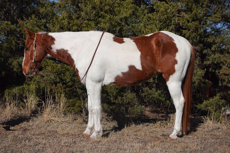 ONLINE AUCTION Place your bids at www.PlatinumEquineAuction.com Starting Bid $3500 Auction ends December 29th, 2024 Need a new saddle? Check out White Rock Saddles on our website or Facebook! RD Ranch and Performance Horses is proud to introduce Atlas, a 10-year-old, Paint Gelding standing at a sturdy 14.2 hands tall. This beautiful boy is the ultimate trail companion—he’s confident, sure-footed, and ready to go wherever you point him! Atlas absolutely loves the trails and takes everything in stride. Whether it’s crossing creeks, navigating steep hills, or calmly exploring a new area, Atlas, handles it all with ease and grace. He’s a laid-back guy with more WOAH than go, making him perfect for riders who want a relaxed ride. Not only is Atlas a dream on the trail, but he’s also easy to handle on the ground. He loads into the trailer, stands tied, and is excellent for the farrier. Atlas is up-to-date on vaccinations and worming, easy to catch in the pasture, and always the first to meet you at the gate. If you’re looking for a dependable horse to hit the trails, enjoy weekend adventures, or just ride around the ranch, Atlas is your guy. He’s been exposed to all kinds of environments and is as steady as they come. Don’t miss your chance to own this sweet, reliable gelding. Contact us today to come meet Atlas and see why he’s the perfect fit for your trail-riding dreams! We are located in Guthrie, OK. Call RD Ranch & Performance Horses Danielle 775-395-9093. ONLINE AUCTION Place your bids at www.PlatinumEquineAuction.com Starting Bid $3500 Auction ends December 29th, 2024 Need a new saddle? Check out White Rock Saddles on our website or Facebook!