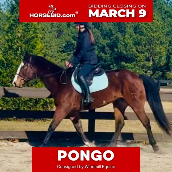 ℳ𝒶𝓇𝒸𝒽 ♦️𝐑𝐈𝐃𝐄𝐑'𝐒 𝐂𝐇𝐎𝐈𝐂𝐄♦️ Happening now thru MONDAY | MARCH 9th - Available EXCLUSIVELY on HorseBid's website! For more details and to register visit: www.Horsebid.com CONSIGNOR CONTACT: Windmill Equine 860-250-9120 LOCATION: Johnston, SC BREED: APHA REGISTERED: Yes REGISTERED NAME: Azure Two COLOR: Bay Over HEIGHT: 15.2 AGE: 11 GENDER: Gelding Pongo is a 11yo 15.2h APHA gelding. In the barn this guy is the perfect gentleman. He loves to be doted over and loved on. This guy has mostly been a husbands horse in his career. He has been many miles in the woods, down the road, through the mountains and in the ring. He is quiet and definitely more whoa than go. He will never go anywhere faster than you would want. He may be quiet, but you still don’t need to beg him to go, just ask and he will listen. He rides English and western, bareback too. He jumps a small course of fences and his changes are well started. Out of the ring he is a pro. He rides out alone or with others. He will lead or follow. He will babysit the young horses on their first rides out of the ring. He is a great teacher and a wonderful babysitter. This guy is looking for his next best friend. He is ready to take on new and fun adventures down the trail or in the ring. He is safe safe safe. Anyone will be able to ride this guy. We can’t find enough good things to say about him. If you are looking for your next grandma, husband or kid safe horse, look no further because he is waiting for you right here.