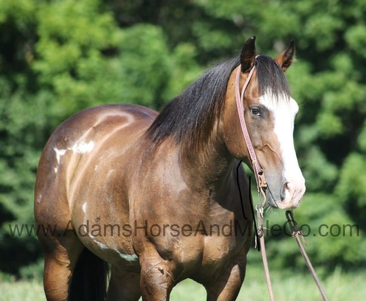 Go to www.AdamsHorseAndMuleCo.com for more pics and a video. AHAMC has been in the horse business and sold horses over the internet since 2005. We have a long track record of success with hundreds of happy customers. We work hard to match riders with the correct horses and specialize in beginner safe, family friendly horses that have been used and checked out by our family! Hercules is a super stout built dark buckskin overo gelding standing around 15.1hh. He is an 11 year old with lots of experience! Hercules has been used around the ranch for sorting and penning cattle. He has been pasture roped off of and doctored sick ones. Hercules is a great horse to rope out of the box on the head side and is one that a novice can take to jackpots and win on. Away from the ranch and ropings, Hercules is an awesome trail horse! He will mosey along slow and easy down the trails and he is a horse that the whole family can ride and one that will build everyones confidence levels! Hercules has been ridden in South Dakota, Oklahoma, Texas and throughout Kentucky. He will cross creeks, ditches, logs and navigate rough rocky areas. He is safe riding in traffic. He has a smooth jog, has a good stop, turns a circle both ways and backs with ease! Hercules has the one of the best lopes that you will ever set on, you just wont find one that is any softer or smoother! Hercules is a confident horse on the trails and will lead the crew, head out alone with no issues! He has been exposed to all kinds of wildlife such as deer or turkey or other animals like cows or dogs and will go anywhere that he is asked too. He has been rode many miles in the mountains of Eastern Kentucky and encountered every obstacle possible on the trail. He will go up or down even the steepest slopes, across deep creeks, over downed trees, and over all types of rough terrain while still being sure footed. Hercules is not cinchy, cold backed, does not crib or weave. Hercules is sure to be the family favorite for years to come!!! Feel free to call Eric 606-308-2461 with any questions.