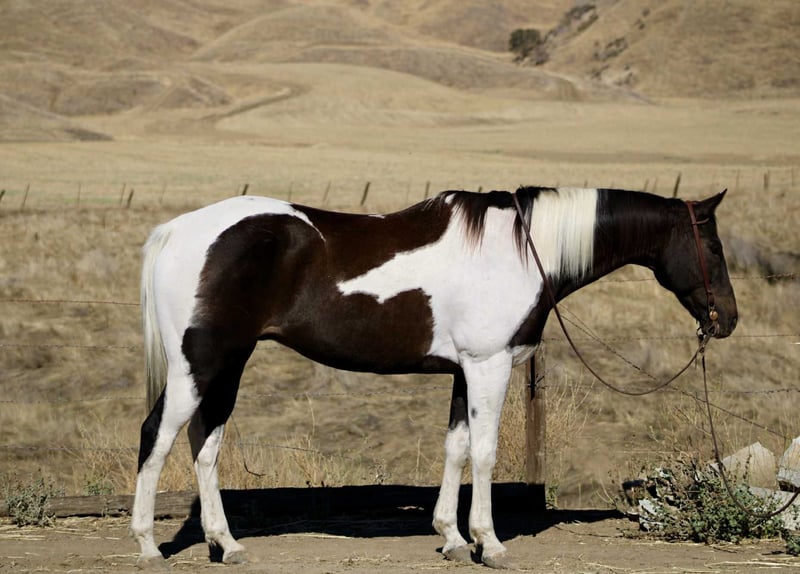ONLINE AUCTION Place your bids at www.PlatinumEquineAuction.com Starting Bid $3500 Auction ends October 19th, 2025 Need a new saddle? Check out White Rock Saddles on our website or Facebook Checkers is a 12-year-old, 15.2hh Paint gelding with a calm, easy-going personality and a kind eye to match. He’s the type of horse that’s always a pleasure to be around, quiet on the ground, respectful of space, and enjoys attention. Whether you’re looking for a horse to enjoy the trails, ride in the arena, or continue developing for English or Western disciplines, Checkers has the foundation and temperament to go in just about any direction. In the arena, Checkers walk-trot-lopes on a loose rein with smooth transitions, a nice stop, and a collected reverse. He’s been ridden both English and Western, and with his floaty, soft movement and balanced gaits, he’s an excellent candidate for someone looking to continue him in English, he really catches the eye moving around the arena. He’s responsive without being too forward and has a willing attitude that makes him a great match for confident riders who want a horse that’s enjoyable to ride and work with. Out on the trail, Checkers goes where you want and has lots of stamina. He’s been ridden through parks, around town, and out on open trails. He’ll go out alone or in a group without fuss, and he handles trail obstacles with ease. He’s sure-footed, calm in new environments, and doesn’t get rattled by activity around him, he’s been exposed to a lot and takes it all in stride. Checkers hauls and loads with no issues and gets along well with other horses in turnout or when riding out. With his solid training, friendly personality, and good looks, Checkers is the kind of all-around gelding that’s getting harder to find. He is located in Bitterwater, CA. Please call Cheyenne Rey at 831-537-8746 for any more info. ONLINE AUCTION Place your bids at www.PlatinumEquineAuction.com Starting Bid $3500 Auction ends October 19th, 2025 Need a new saddle? Check out White Rock Saddles on our website or Facebook