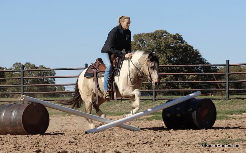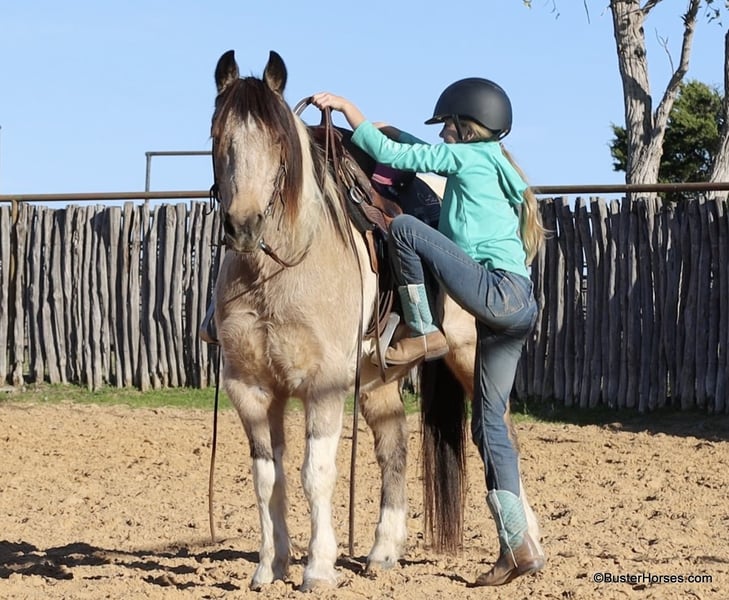 ONLINE AUCTION Place your bids at www.PlatinumEquineAuction.com Starting Bid $3500 Auction ends December 22nd, 2024 Need a new saddle? Check out White Rock Saddles on our website or Facebook! “Teddy Bear” – 13.2H, 12 year old buckskin paint gelding… If you are looking for a sweet, friendly, pleasant little horse who is always there at the gate and ready to go – then check out Teddy’s video! This little horse has been miles and miles in big country, he has checked tons of fences and cows, and he is so pleasant and easy to ride. He has a big walk and can easily keep up with any of the big horses. He will walk out on a big loose rein and travel and get you where you need to go. He is very simple and uncomplicated to ride, he guides well and has a good stop anytime you mention whoa! He has done a little jumping and would make the cutest little entry level dressage or nunter / jumper horse for a little lady, or for a youth rider. Teddy has very smooth gaits – he has an easy little trot and nice comfy lope. He catches both of his leads easily. If you are looking for a fun sized little horse who is big boned and stout enough to tote everyone, but small enough for anyone to ride comfortably and not be intimidated, check out this sweet affectionate little horse. Please call anytime for more information at 214-605-7174 Teddy Bear is located in Weatherford, TX – one hour from Dallas / Fort Worth International Airport. He is an easy day trip or fun overnight trip to come try out, from anywhere! We are experienced knowledgeable sellers and we can help with quickly arranging affordable shipping to any buyer’s location – we have experience shipping horses worldwide – including regularly to Hawaii, Canada, Mexico, Europe, and South Africa. Go to our Facebook page Buster Ranch and check our website for buyer reviews, for more videos, additional info, etc: ONLINE AUCTION Place your bids at www.PlatinumEquineAuction.com Starting Bid $3500 Auction ends December 22nd, 2024 Need a new saddle? Check out White Rock Saddles on our website or Facebook!