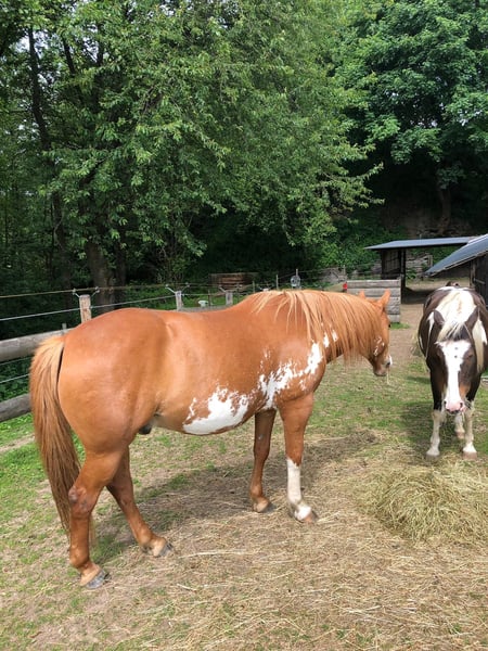 Beautiful 15-year-old Paint Horse gelding looking for a suitable new home. Phoenix is a gentle, people-oriented horse. At age 4, he completed a 4-month foundation training in Western riding with professional Jürgen Wickert and has been primarily used as a leisure horse over the past 10 years, mainly for trail riding. He also enjoys groundwork and is diligent in his work. For the past 1.5 years, he has not been in training or work due to personal circumstances and health issues. He is being sold because the stable community will be dissolved in May 2026 due to relocation. He is simply too good to stand around and needs to be kept busy. He is also accustomed to being ridden as a lead horse in the terrain. He knows trailering and loading well, and remains calm in unfamiliar environments, reflecting his easy-going nature. Currently, he lives outdoors year-round in a paddock with an older gelding but is also used to overnight stabling in a box. He has a hay dust allergy, which is well-managed with dust-free housing and soaked hay. He is sold exclusively to caring, loving owners, starting from May 2026, preferably in an outdoor paddock setup. Viewing and multiple visits are possible by arrangement. Born May 1, 2010, Height: 1.55 m (about 16.1 hh), Overo sorrel coat, Priced below value, Negotiable €2,800