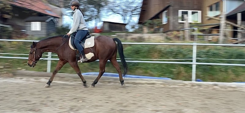 Pönsch ist ein 17-jähriger Paint Horse Wallach mit einem Stockmaß von 142 cm, der ein liebevolles und erfahrenes Zuhause sucht. Er ist nach klassischen Grundsätzen ausgebildet und überzeugt besonders durch seinen feinen, sensiblen Umgang. Pönsch ist kein Anfängerpferd – er benötigt einen klaren, souveränen Menschen, der ihm Sicherheit gibt, ohne dabei zu viel Druck auszuüben. Bei passender Führung zeigt er sein volles Potenzial und ist ein zuverlässiger Partner. Gesundheitlich bringt er leichtes Asthma mit, welches bei staubarmer Haltung sehr gut händelbar ist. Aktuell kommt er problemlos ohne Medikamente aus. Derzeit läuft Pönsch mit Klebebeschlag an allen vier Hufen und kommt damit sehr gut zurecht. Ohne entsprechenden Hufschutz zeigt er sich fühlig. Er ist kein Gewichtsträger und wird ausschließlich in artgerechte Haltung abgegeben. Offenstall oder vergleichbare Haltungsformen mit viel Bewegung sind Voraussetzung. Besonders wichtig ist uns eine Gruppenhaltung, idealerweise in einer kleinen, konstanten Herde. Pönsch wird nur in passende, verantwortungsvolle Hände abgegeben. Bei ernsthaftem Interesse freuen wir uns über eine Nachricht.