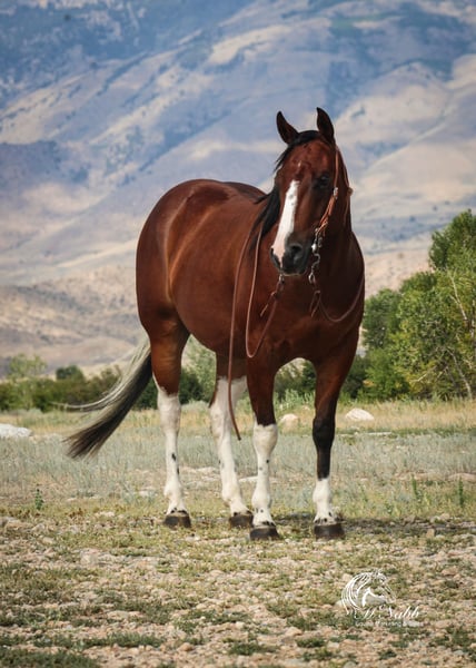 𝕄ℂℕ𝔸𝔹𝔹 𝕃𝕀𝕍𝔼𝕊𝕋𝕆ℂ𝕂's 🍂𝟑𝟎𝟕 𝐅𝐀𝐋𝐋 𝑺𝒑𝒆𝒄𝒊𝒂𝒍🍂 Happening now thru MONDAY | SEPTEMBER 15th - Available EXCLUSIVELY on HorseBid's website! For more details and to register visit: www.Horsebid.com CONSIGNOR CONTACT: McNabb Livestock LLC 307-250-0900 LOCATION: Cody, Wy BREED: Paint REGISTERED: No COLOR: Bay Tobago HEIGHT: 14.1 AGE: 3 GENDER: Gelding Jackpot is absolutely the best minded young horse we have the privilege of having in our program. He is just naturally so smart, sweet, kind and has a gentle demeanor all the time. Our neighbor purchased him as a yearling from the breeder. We fell in love with him and bought him from them as a 2yr old. He was lightly started at 2, trail rode all over the mountains, then broke to drive and this year we have been doing ranch work with him and he has taken everything is stride. He has never been spooky or offered to buck. This fall we have allowed our 4yr daughter to ride him in the indoor arena, we are not selling him as a beginner’s kids horse but he sure has the mind and the right disposition to be one in a few years. Our 11yr son rides him everywhere bareback. Jackpot is super smooth to ride, naturally low headed. Soft in the bridle. He lopes pretty circles, knows his leads, has a good stop and turn around. Jackpot is sweet, kind and loving. He’s in-your-poctet but has lots of manors and is very polite. He has no vices or bad habits. He will ride out alone or he’s happy in a group. He has everything going for him. Excellent conformation, soft kind eye, gentle disposition, with the right amount of chrome to make him flashy. He has had a basic PPE, up to date on worming, dental and farrier. We welcome you to do your own PPE and to come to the ranch a to meet Jackpot. We also are glad to help arrange transportation. We will hold the horses at no charge for a reasonable amount of time to get hauling arranged. For more information call 307-250-0900.