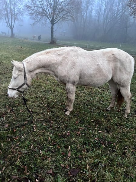 Jack Pine Forever - ein gesunder, gut gebauter Paint Horse Wallach, geboren am 31. März 2023, in einer seltenen smoky cream solid Farbe mit zwei strahlend blauen Augen - ein echter Hingucker! Mit einem aktuellen Stockmaß von ca. 147cm zeigt er sich harmonisch bemuskelt, robust und bestens proportioniert. Sein Charakter macht ihn zu etwas ganz Besonderem: zutraulich, verschmust und menschenbezogen, zeigt er sich von Anfang an freundlich und lernwillig. Im Umgang ist er brav, unkompliziert und aufmerksam, kennt Tierarzt- und Hufschmiedbesuche, ist regelmäßig entwurmt und mit Offenstall- sowie Weidehaltung bestens vertraut. Jack Pine Forever bringt bereits das Fohlen-ABC mit und ist angeritten, wodurch er sich ideal als Jungpferd zum Selberausbilden eignet. Geht brav ins Gelände und macht sich unterm Sattel ganz toll. Seine solide Allround-Abstammung, 5-Panel n/n über die Eltern und volle Paint Horse Papiere machen ihn zu einem vielseitigen Freizeitpartner, der später in vielen Bereichen Freude bereiten wird. Dieses coole Jungpferd verbindet Gesundheit, Charakter und Schönheit - perfekt für alle, die ein zuverlässiges, lernwilliges und auffälliges Pferd suchen. Jack Pine Forever wartet darauf, gemeinsam mit seinem neuen Menschen zu wachsen und zu glänzen!