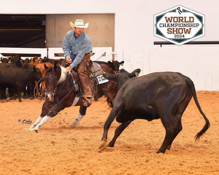 ⚜ The HERITAGE Classic ⚜ Happening now thru MONDAY | AUGUST 11th - Available EXCLUSIVELY on HorseBid's website! For more details and to register visit: www.Horsebid.com CONSIGNOR CONTACT: Schmitt Horse Ranch 507-459-8654 LOCATION: Holland, IA BREED: APHA REGISTERED: Yes REGISTERED NAME: Hashtag Blessed COLOR: Black Tobiano HEIGHT: 14.3 AGE: 5 GENDER: Gelding “Bandit” is a striking paint gelding that stands 14.3 hands tall and is built like a tank — thick, muscular, and correct. This unique gelding is by Hashtags out of a daughter of Thomas E Hughes! He is a finished cutter and has won $2,323 NCHA. 2024 APHA World Championship Show Jr Cutting Reserve Champion, marking a 220.5. Also marked a 217 in the 4-Year-Old Limited Open at the 2024 NCHA Super Stakes. Bandit is super gentle and a pleasure to be around. He stays trained, and is youth/amateur appropriate in the cutting pen. This is a super cool, one-of-a-kind individual that checks all the boxes - talent, looks, experience, and temperament. Bandit has also been ridden on the trails, been through our thorough desensitizing program, and has been roped on by the previous owners. This guy is versatile and can do about anything that’s asked. Bandit is super fun on the flag as well, and definitely doesn’t have to be tuned on daily to remember his job. He is smooth moving and has the softest rocking chair lope that you’ll ride. Bandit has a fancy handle with all the bells and whistles. Hauls, loads, stands tied, bathes, and stands great for the farrier. Great in a stall or outside, super easy going and gets along with other horses. I believe about anyone who can climb up in the saddle should be able to get along with this guy. With his sweet, charming personality, quick and catty moves on a cow, smooth rocking chair lope, and jaw-dropping good looks — Bandit is the kind of horse you can’t help but fall in love with! Current on deworming, farrier, vaccinations, basic pre-purchase exam, and coggins. For more information give us a call 507-459-8654. Bandit is located in Holland, Iowa. We welcome test rides prior to the auction ending as well and free board within a reasonable time frame after purchase until shipping arrangements can be made.