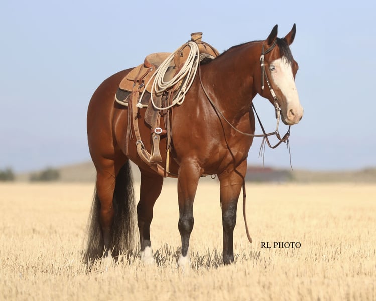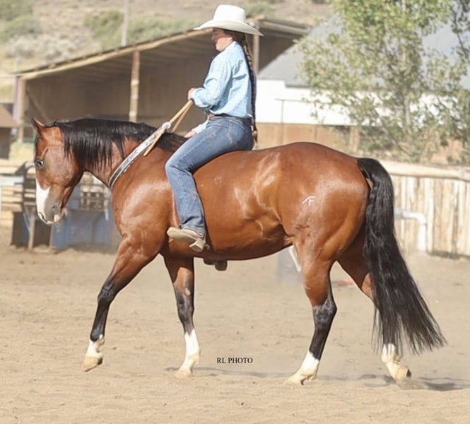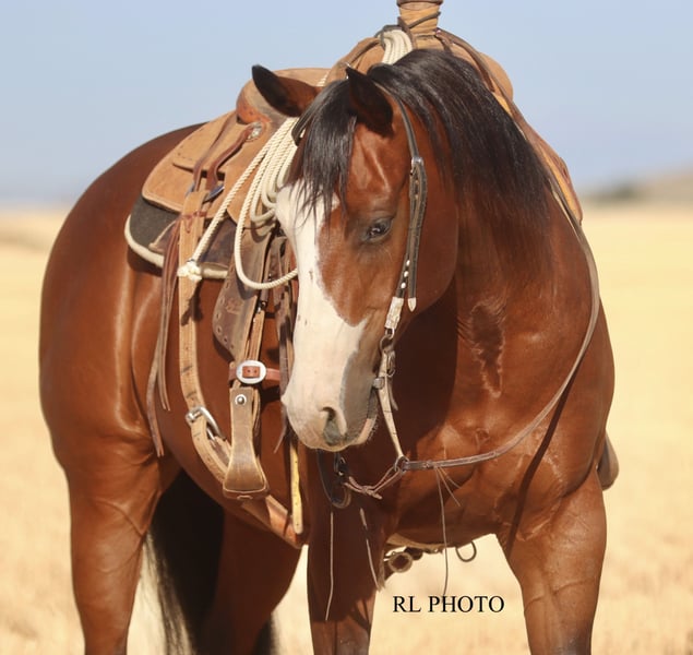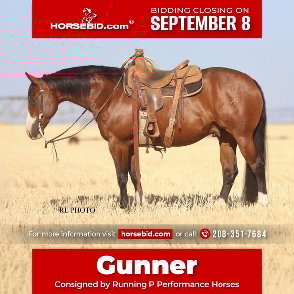 ♦️ 𝐭𝐡𝐞 𝐒𝐞𝐩𝐭𝐞𝐦𝐛𝐞𝐫 𝑺𝒆𝒍𝒆𝒄𝒕 ♦️ Happening now thru MONDAY | SEPTEMBER 8th - Available EXCLUSIVELY on HorseBid's website! For more details and to register visit: www.Horsebid.com CONSIGNOR CONTACT: Running P Performance Horses 208-351-7684 LOCATION: Menan, ID BREED: APHA REGISTERED: Yes REGISTERED NAME: DFN Spook Magnificent COLOR: Bay HEIGHT: 14.3 AGE: 7 GENDER: Gelding DFN Spook Magnificent is a gorgeous 2018 APHA gelding sired by Spooks Delta Dude (Spooks Gotta Gun) and out of Magnificent Sting. His sire, Spooks Delta Dude is a proven cowhorse with numerous accomplishments to his name. His dam, Magnificent Sting is also a proven show horse with $25k+ in earnings herself. “Gunner” stands a thick 14.3 hands, this kind doesn’t come around very often! He wears a size one shoe and is a big bodied, full made horse with a ton of shape. You don’t find one this chromed up, well made, and with as much substance as he has very often. Gunner is just as amazing to ride as he is to look at. Truly the epitome of an “all around.” He is ready and willing for absolutely anything you throw at him. Gunner has been in a reining program at the start of his career and knows all the maneuvers well. He is truly push button and very enjoyable to ride. He has great spins, stops on a dime, effortless lead changes, and rides around on a loose rein. Gunner has had a full time job as a true ranch horse and knows what a full day’s work looks like. He has done all the ranch chores including branding, shipping, doctoring, gathering and sorting. Saddle him up weeks fresh on a cold morning and he rides off like you rode him yesterday. He is a true saint, kids of all ages have ridden him both inside the arena and on the ranch and trails and you won’t find one more patient or tolerant than Gunner. He is happy to go whatever speed he is asked of and has been a great confidence builder for the kids. He is the one we throw an inexperienced rider on when we know it will be rough country as he is very sure footed and attentive to where his feet are. It’s pretty tough not to fall in love with his personality! He will be the first one to meet you at the gate and follow you around like a dog wherever you go, yet still has great manners. Gunner is showing great promise as a switch ender rope horse. He is strong to the horn on the head side reads cattle well and is just plain easy to rope on. Heeling also comes natural to Gunner, he takes the jerk strong, stops well and is honest as the day is long. He reads cattle well making him easy to rope on and extremely useful when sorting on the ranch or in the arena. Gunner would also excel in ranch versatility classes with his extensive training and great mind. Gunner is TRULY the entire package with stunning looks, personality, training, talent, a great mind and of course the bloodlines that it takes to make a great one. We truly believe Gunner is one of those special horses that it wouldn’t matter who buys him, the possibilities are endless with him. He is truly talented with a great mind and excels at everything you throw him. We have loved every second of owning this standout gelding and feel confident you will too. We encourage anyone interested in Gunner to watch his YouTube video, it truly describes what an outstanding individual he is better than words ever could! Please don’t hesitate to call (208)351-7684 or (208)690-9766 with any further questions or to schedule a time to come see him for yourself!