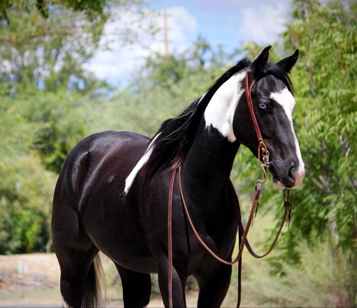 ONLINE AUCTION Place your bids at www.PlatinumEquineAuction.com Starting Bid $3500 Auction ends October 6th, 2024 Need a new saddle? Check out White Rock Saddles on our website or Facebook! It’s not every day you see a unique paint like Grimm! This guy is sure to get you noticed anywhere you take him with his flashy face and blue eyes. Grimm is a 5 year old gelding standing 15.2 hands. He is a trail horse deluxe and has been ridden all over Arizona. Water, logs, brush, slick rock are all easy for him to tackle. He rides through town without a care in the world too! Grimm rides western and English in the arena as well, and really enjoys dressage! He is soft in the face, moves off leg well and is quiet, gentle and respectful. Grimm is great on the ground as well, good to shoe, bathe, load and haul. He is UTD on coggins, vaccines, teeth and shoeing. This guy really is the total package and can do anything you ask of him. Don’t miss out on this one of a kind gelding! Feel free to call or text with any questions about this sweet boy, Claire Siebols 435-899-0508 Located in Camp Verde, AZ. ONLINE AUCTION Place your bids at www.PlatinumEquineAuction.com Starting Bid $3500 Auction ends October 6th, 2024 Need a new saddle? Check out White Rock Saddles on our website or Facebook!