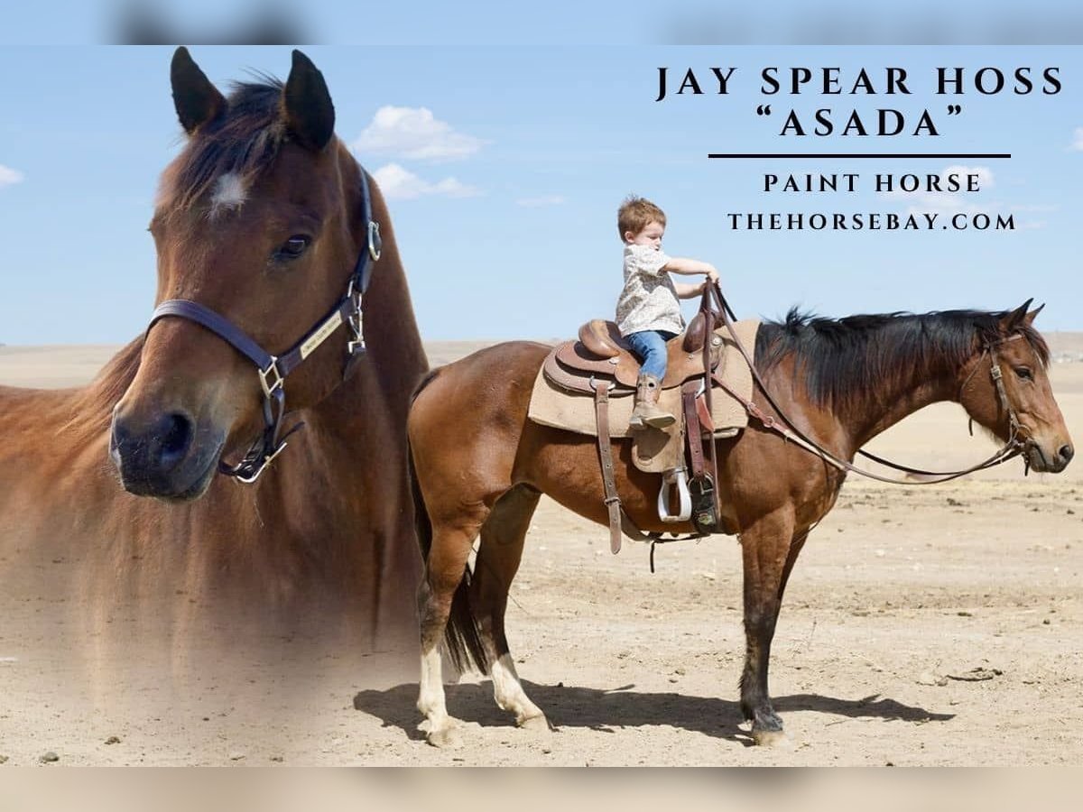 Asada is a kind, honest, papered APHA gelding that truly lives up to the phrase “more whoa than go.” If you’re looking for a steady, confidence-building partner, this is your guy. Asada is the type you can count on every single time you swing a leg over. He neck reins with ease, rides bridleless, rides quietly and softly, and is happiest taking care of his rider. Out on the trail, he’s as dependable as they come, no spook, no nonsense, just a calm, steady walk and a willing attitude wherever you point him. He crosses water, bridges, and is traffic safe. He’s even been swimming in the summer. Whether you’re riding out alone or with a group, he stays levelheaded and relaxed. He is not buddy sour whatsoever and is so content with his handler. He rides English and western and has super smooth, floaty gaits. He stops on the word “whoa” and rides beautifully on a loose rein. What really sets Asada apart is his easy-going personality. He’s been used in lessons with little kids and takes his job seriously, packing them around with patience and care. He doesn’t rush, doesn’t get flustered, and always stops if unsure. He is the horse you can trust for a family horse and for beginners. He has packed a flag, been in a parade, and isn’t spooked by flapping items, bicycles, or different new things on the trail. Asada is great for the farrier: self-loads into the trailer, backs out, and stands quietly for the vet. He respects your space when leading so well, my friends, that a 3-year-old can lead him completely by himself. He ties quietly, doesn’t paw, and gets along well with other horses in a herd. Asada is also great with time off and has no vices or bad habits.