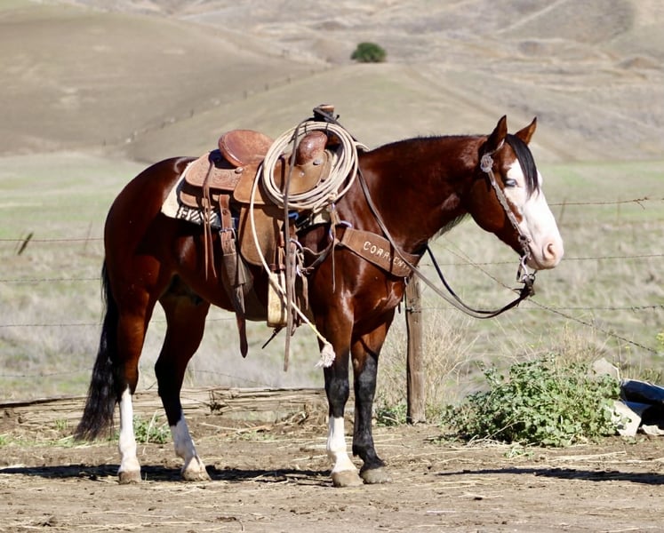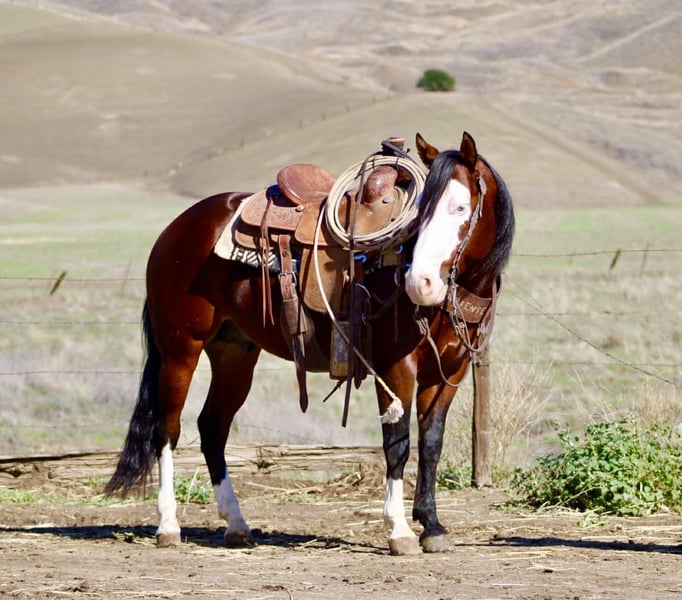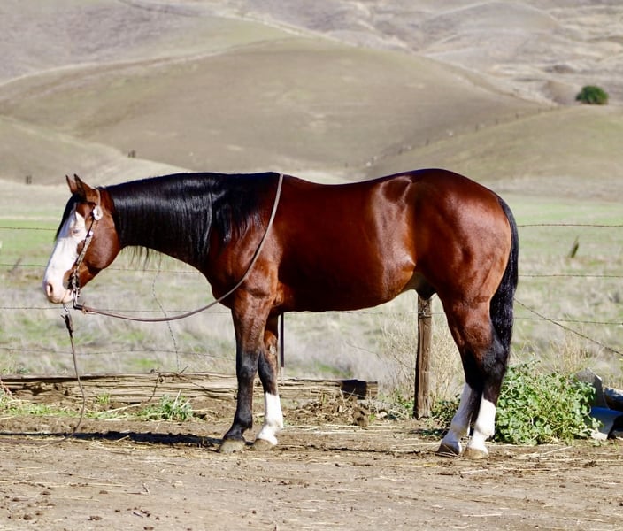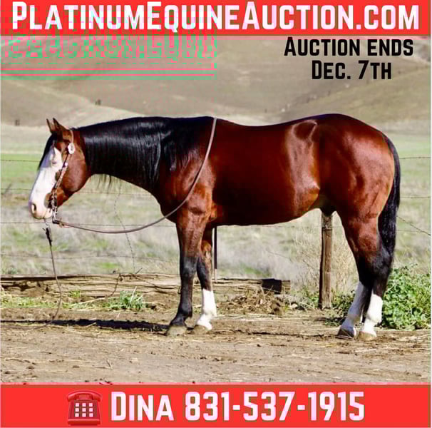ONLINE AUCTION Place your bids at www.PlatinumEquineAuction.com Starting Bid $3500 Auction ends December 7th, 2025 Need a new saddle? Check out White Rock Saddles on our website or Facebook A CLASSY DERRINGER — SMALL PACKAGE, BIG TALENT, ZERO NONSENSE… Derringer is the little horse that rides like he’s auditioning for the head trainer position, not the warm-up pen. He’s 8 years of experience standing At 13.2 hands, he’s the perfect height for those of us who are done rock-climbing into the saddle, but still expect a horse that is correct, broke, seasoned, and truly useful. He is not a “make-do” size — he is the full-performance model, conveniently closer to the ground. I rarely, if ever, use the word bombproof — but after everything I’ve thrown at him, everything he has seen, everything he has stepped over, under, and through, I can confidently say he is as close to bombproof and unflappable as you’ll ever meet. He is, without hesitation, the most calm, steady-brained, and unrattled horse I’ve ever handled. He is suitable for both adults and kids, and if you want your child to have the best shot at becoming a real, confident, capable rider, this is the horse that will actually teach, not terrify. Good horses make good riders — Derringer builds them. He has the looks that stop conversations: deep bay, a wide bald face, two eyeliner-perfect blue eyes, and high white socks that say “yes, take another picture, I know.” He’s show-quality, video-approved, and impossible to duplicate. He isn’t just pretty — he is distinct, memorable, and rare. Derringer rides like a little reiner with a day-job — soft in the face, travels collected, moves off leg with ease, has a true stop and a clean turnaround, and lopes beautiful, pretty, correct circles in the arena like he’s been practicing for judges who won’t blink. He has been used for real ranch work — gathering, sorting, doctoring, and branding — and he has also been started heeling. He’s naturally cowy, positions himself right, and has a good, honest stop ready for someone to continue him in the roping if desired. Outside the arena, he handles everything from rocks, hills, mud and brush to water, bridges, flags, tarps, pool noodles, and wildlife — yes, even the kind that jumps out and makes seasoned horses invent new dance moves. Derringer just blinks, sighs, and keeps traveling like someone promised him hay at the end of the trail. And because you asked — yes, you can crawl on him, stand on him, hang off him, drag from him, climb around him, and he genuinely could not care less. He’s more patient than a ranch wife waiting in the truck while someone says “one more” at the branding pen. He is just as polite to live with as he is to ride: ties, clips, loads, bathes, stands for the farrier, hauls quiet, settles in new places, stalls or pastures with no drama, and stays easy on feed. Vet and farrier care is up-to-date. They don’t build them like this often. Derringer is the definition of what everyone looks for, yet almost no one gets the chance to own. He is truly unique, genuinely beautiful, and unquestionably one-of-a-kind. You can look at fifty horses or five hundred — you won’t match him.Come see him for yourself and you will fall in love just like we all have with this special boy. He is one that is hard for us to let go of. Location: Paicines, California Owner: Dina -Longhorn Ranch Phone: 831-537-1915 Shipping: Nationwide, professional haulers available Vet & Farrier: Current, correct, and consistently maintained ONLINE AUCTION Place your bids at www.PlatinumEquineAuction.com Starting Bid $3500 Auction ends December 7th, 2025 Need a new saddle? Check out White Rock Saddles on our website or Facebook
