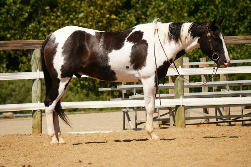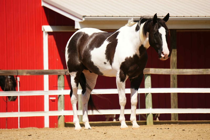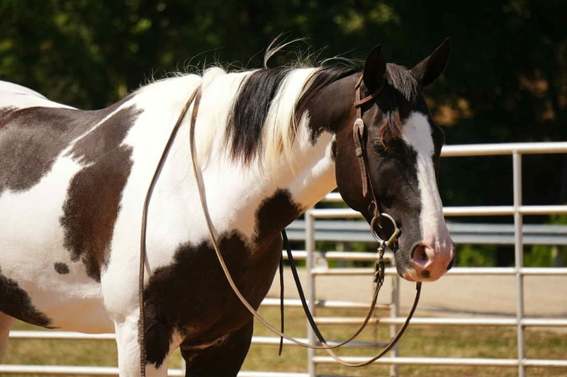 Their coats are usually black or bay with stunning patterns of white (known as ‘overo’) which may vary from individual to individual – even within the same litter. They also come in various shades including grullo (blue-gray) and dun (dark tan) though these colors are less common. Along with the colored markings which give them their name, paint horses feature broad foreheads with pronounced cheeks and large eyes. The muzzle is typically wide with full lips and robust nostrils. Paint horses have well-defined musculature that is toned rather than bulky; long, muscular necks; oblong chests; sloping shoulders; backs that are short yet cushiony; full deep hips; short pasterns (areas between the fetlock joint and hoof); pointed hocks; deep set tails; and powerful hindquarters. The amazing thing about this breed is that they combine athletic ability with good looks! With sound feet and legs as well as agility, endurance and speed on their side, it’s no wonder that owners of competing ponies choose paint horse breeds for events such as barrel racing or dressage.