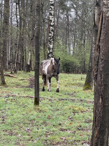 For sale is an 8-year-old Paint Horse gelding in the rare and stunning Grullo color. He is correctly built, exudes a lot of expression, and has a strong presence – a horse that cannot be overlooked. He has been in our possession for seven years and has lived both in a large herd on extensive pasture land and currently in box stall confinement with a small gelding herd. He tends to be more dominant and confident in social interactions. Due to periodic conjunctivitis, both eyes were operated on when he was three years old; unfortunately, he lost one eye due to an infection post-surgery. However, this does not limit him in everyday life – he copes very well and has been specifically verbally trained on his "blind side" (right). He was only backed at the age of six. He initially handled this well: walk, trot, and canter, including tempo regulation, were no problem. However, during further training, it quickly became clear that this is not his preferred lifestyle. He has a true fighter's heart in all disciplines, and if he doesn’t want to do something, he clearly questions it – therefore, he is explicitly not being sold as a riding horse, as he currently does not enjoy endless rounds in the arena. His strengths lie clearly in groundwork, trail riding, as well as in trail and mental exercises. He is extremely intelligent, learns complex routines very quickly, and works happily with a handler who approaches him correctly. Character-wise, he is not a "cuddle horse" – he tests boundaries, immediately exploits uncertainties, and consistently challenges his handler. At the same time, he is incredibly sensitive and refined, offering his person very special moments when led with clear, fair guidance. He is a brave horse that requires an experienced, confident horseman with excellent timing, who enjoys working with a strong-willed horse and guiding it with love and consistency. He is not suitable for beginners or insecure riders. Of course, he has been examined by a veterinarian – physically, he is in absolute top condition. We are reluctantly offering him for sale because we have realized that we ask things of him that he cannot give, and he offers us things that, unfortunately, are not enough for us. Therefore, we are looking for a wonderful, five-star forever home where he will be seen, appreciated, and loved. If genuinely interested, we look forward to receiving a message with a brief introduction.
