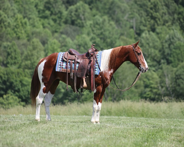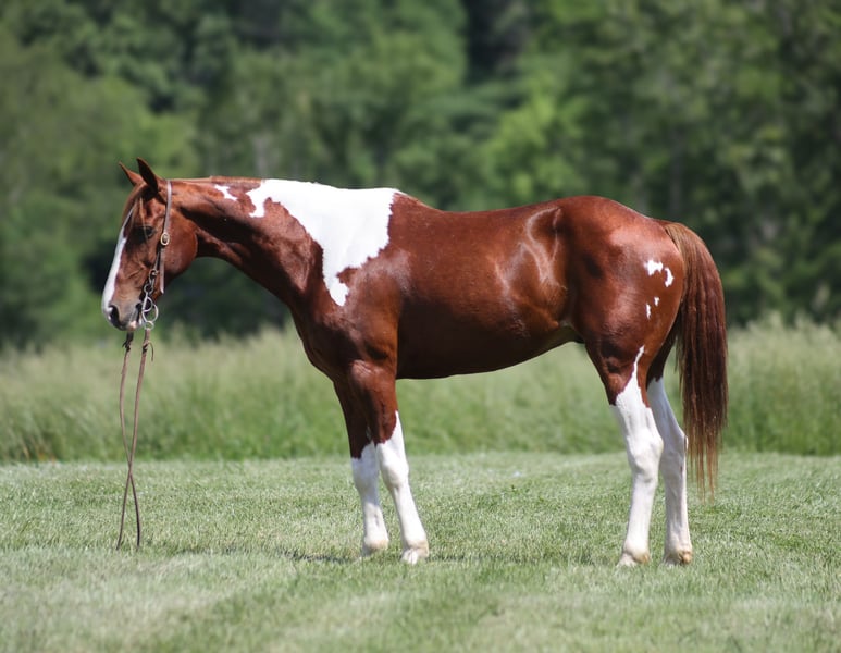 ONLINE AUCTION Place your bids at www.PlatinumEquineAuction.com Starting Bid $3500 Auction ends June 8th, 2025 Need a new saddle? Check out White Rock Saddles on our website or Facebook! Alexander The Great is a beautiful Chestnut Tobiano Paint Quarter Horse Gelding that is standing 14.3hh and he is a 8 years old! Alexander has been ridden on a cow/calf operation and at the feedlot as well. Alexander lopes nice circles, catches the correct leads and has a good stop. Alexander is at home on the trails and nothing phases him! He is content to mosey and loves going on trail rides. He will cross creeks, ditches, logs and navigate rough rocky areas. He has been exposed to all kinds of wildlife and will go anywhere that he is asked too. He has been rode many miles in the mountains and encountered every obstacle possible on the trail. He will go up or down even the steepest slopes, across deep creeks, over downed trees, and over all types of rough terrain while still being sure footed. Alexander has been ridden down the highways and is traffic safe as well. If you want to cruise along down the trails or push cows around the ranch, Alexander the Great is great! If you have any questions, would like to make a Buy It Now Offer or set up a Facetime Call, contact Lucky 13 Equine Matt 765-698-4655 or Lysandra 765-717-2041 Located in Brodhead, KY. ONLINE AUCTION Place your bids at www.PlatinumEquineAuction.com Starting Bid $3500 Auction ends June 8th, 2025 Need a new saddle? Check out White Rock Saddles on our website or Facebook!