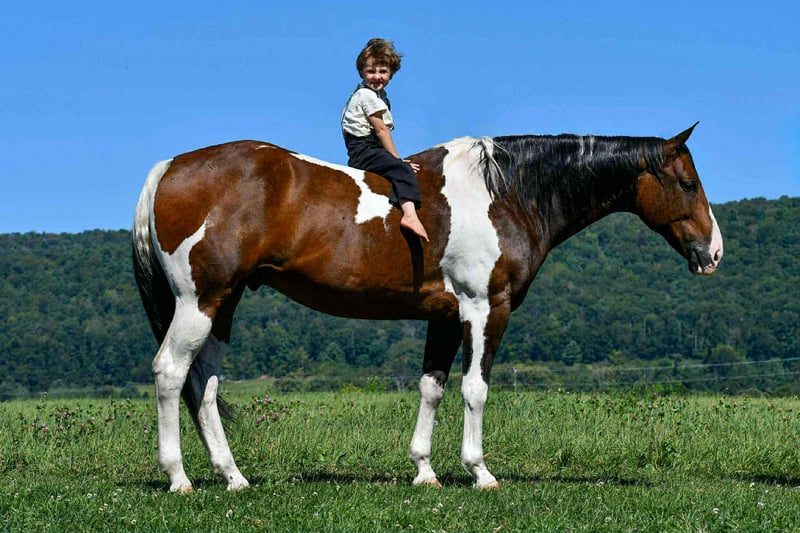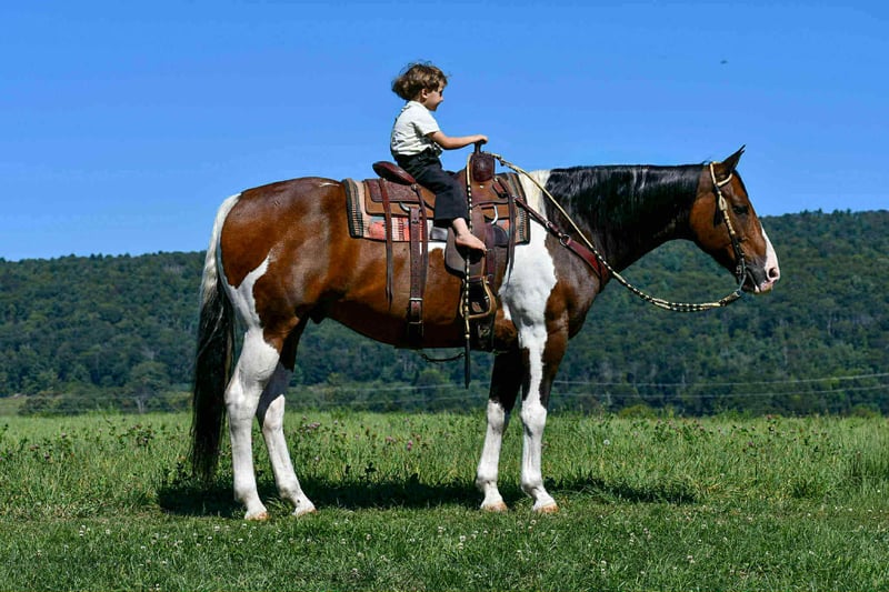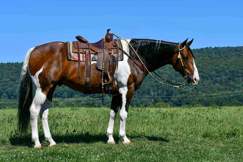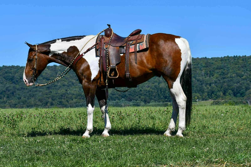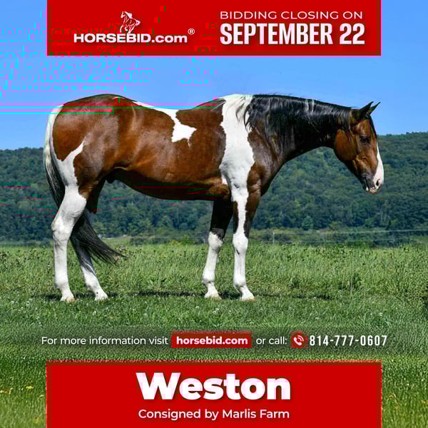 🍁𝒕𝒉𝒆 𝐅𝐀𝐋𝐋 𝑺𝒑𝒆𝒄𝒕𝒂𝒄𝒖𝒍𝒂𝒓🍁 Happening now thru MONDAY | SEPTEMBER 22nd - Available EXCLUSIVELY on HorseBid's website! For more details and to register visit: www.Horsebid.com CONSIGNOR CONTACT: Marlis Farm 814-777-0607 LOCATION: Rebersburg, PA BREED: Quarterhorse REGISTERED: No COLOR: Paint HEIGHT: 16 AGE: 9 GENDER: Gelding Weston is a flawless, 9 year old paint gelding standing at 16 hands tall and stout made. Weston is a true all around partner that is safe for the whole family to ride! His gentle and consistent nature makes him suitable for beginner riders while having the bells and whistles for more advanced riders to enjoy! From the ranch, to the arena, to the trails Weston is ready to do it all! Weston is very well broke and educated! His gaits are slow, smooth and collected. He rides on the buckle or with contact and is very soft in his face! He knows his leads, has good brakes, stops, backs up and neck reins really well! Weston has given the kid’s lessons and is the same horse every time! He rides like a hunter under English tack and is honest over fences! Weston has enough motor, when asked, to excel in fox hunting, cross country, equitation, while also being forgiving and gentle enough to be a husband horse or guest horse on the trail! There isn’t much that excites this guy! He is super confident on the trails, he crosses water, bridges, railroad tracks, and is sure footed in all types of terrain! He is pretty unbothered by his surroundings and doesn’t mind loud noises, trucks, trailers, equiptment, ATVs/SXSs, bicycles, tarps, flags, balls, etc. Weston so use to going off farm that he loads and hauls like a dream, and will load off and stand tied quietly to the trailer at new places. He doesn’t need prep to go ride just saddle up and get to work! Weston is the most uncomplicated horse in my barn! He is an easy keeper, no vices, supplements, maintenance etc. Weston has impeccable ground manners, he stands tied anywhere, loads and hauls great, stands to be clipped, bathed, brushed and saddled and is excellent for the vet, farrier and dentist! If you’re looking for that enjoyable, safe ride or a trustworthy mount to teach your children, Weston’s your guy! Call Mark @ 814-777-0607 for more info or to schedule a visit to meet Weston!