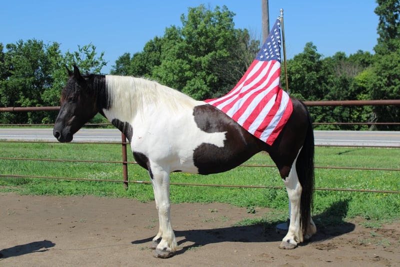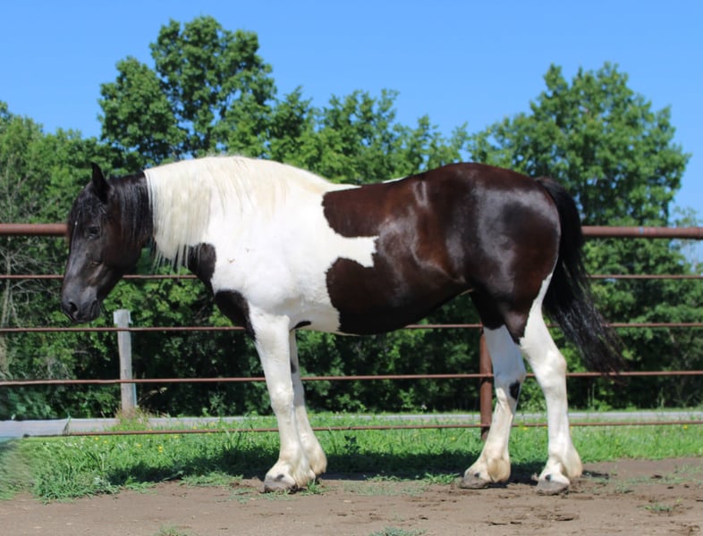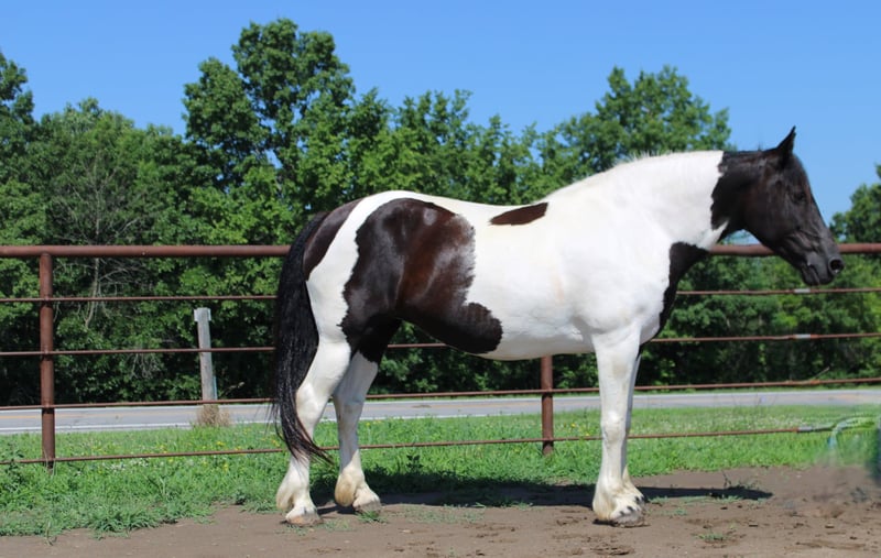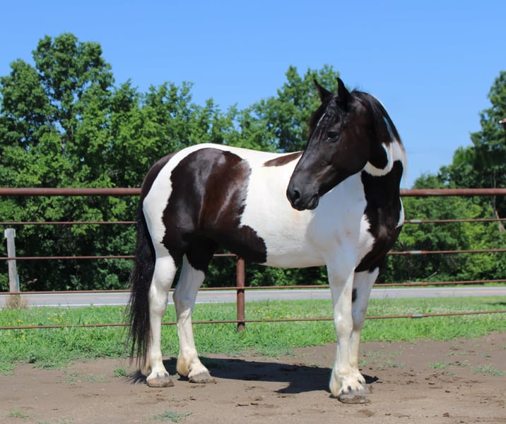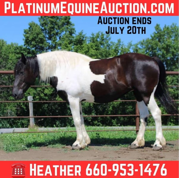 NLINE AUCTION Place your bids at www.PlatinumEquineAuction.com Starting Bid $3500 Auction ends July 20th 2025 Need a new saddle? Check out White Rock Saddles on our website or Facebook Annie – The Spotted Draft Mare That Can Do It All! 12 Years Old | Spotted Draft Mare | Rides & Drives | English & Western | Sells with a 30 day guarantee! If you’re looking for a trustworthy, versatile, and drop-dead gorgeous family horse, Annie checks every box. This 12-year-old spotted draft mare has the looks, the brain, and the experience to go in any direction — and she does it all with total confidence and a kind heart. Annie is broke to drive single and double and rides beautifully under both English and Western tack. She’s been trail ridden all over, gone on week-long camping trips, hauled to parades, concerts, and even rode through downtown Baker, Spain. Loud noises, bright lights, rodeo action, tarps, flags, fireworks — none of it bothers her. She crosses water, swims, rides bareback or double, and ground ties wherever you stop her. ✨ Highlights: • Rides English & Western • Drives single and double • Parade, traffic, trail, and concert safe • Walk, trot, lope with ease – even bareback or double • Crosses water, ditches, and steep terrain • Loads with ease, hauls like a pro • Eats, drinks, and settles in new places effortlessly • Stands quietly for bathing, grooming, tacking, and mounting (even from a fence or truck bed!) • Ground ties, picket-line safe, and easy to catch • 100% sound with no maintenance needed • Great ground manners – handles like a little horse, soft and respectful Annie is a true confidence builder with a heart of gold. She’s been loved by our entire family and has safely carried riders of all ages and levels. Whether you want to hit the trails, cruise the arena, or enjoy leisurely drives — she’s your girl. Located in Princeton, Missouri Call or text Heather Stark at 660-953-1476 Annie is more than just a pretty face — she’s a safe, reliable, and loving partner ready to bring joy to her next home. ONLINE AUCTION Place your bids at www.PlatinumEquineAuction.com Starting Bid $3500 Auction ends July 20th 2025 Need a new saddle? Check out White Rock Saddles on our website or Facebook
