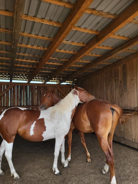 Voor onze "Phoebe" zoeken wij een 5-sterren thuis. Het lieve Paint-merrie (geboren in 2023) heeft bij ons het levenslicht gezien. Haar ouders staan ook op onze boerderij: Moeder: Indiana Vader: Zippos King Bar Haar volle zus uit 2024 kan ook bij ons bekeken worden. Phoebe heeft alles wat je maar kunt wensen: Een sterk, correct gebouw, absoluut onverschrokken, zeer aanhankelijk naar mensen en altijd open voor nieuwe dingen. Ze heeft bij ons alles geleerd wat je op deze leeftijd moet weten: Hoefjes geven, voorstellen bij de hoefsmid, borstelen, douchen/wassen, wandelen/leiden. Phoebe heeft alle basisvaccinaties en wordt bij ons regelmatig ontwormd. Ze heeft een Equidenpas. Ze staat momenteel met andere jonge paarden bij ons in de opfok. Ze kan hier blijven voor verdere opfok of verhuizen naar haar nieuwe thuis. Als u Phoebe wilt leren kennen, kunt u ons gewoon een berichtje sturen.