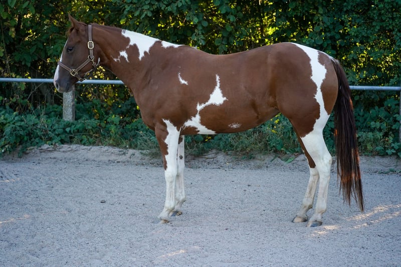 DELTA WYNNI WHIZ is een 4-jarige Paint Horse merrie. Ze heeft na het inrijden nog 6 maanden in professionele training gestaan, had daarna 4 maanden pauze en staat nu weer in professionele training te koop. Ze is super lief en braaf in de omgang, hoefsmid- en vrachtwagenmak, kuddecompatibel en kent zowel box-, als openstal- en weidehuisvesting. Ze is super fijn om te rijden, maar is geen beginnerspaard, omdat ze zeker ook karaktersterk kan zijn en werk nodig heeft. Ze zou zeker een geweldig recreatiepaard zijn en ook goed geschikt voor een wedstrijd - of het nu Reining, Ranch Riding of Trail is... Ook met vee kan ik me haar goed voorstellen. Ze zou zeker een geweldige allrounder zijn en het is ook ontzettend leuk om haar te rijden. We zijn net begonnen met de Ranch Riding manoeuvres. Aan het achterbeen heeft ze door een transportblessure een oppervlakkig litteken, dat haar echter op geen enkele manier stoort. Ze wordt verkocht met APHA-papieren en een Equidenpas. Plaats voor prijs, prijs stijgt met verdere opleiding. Vragen graag via WhatsApp naar 01772199292 of per privébericht.