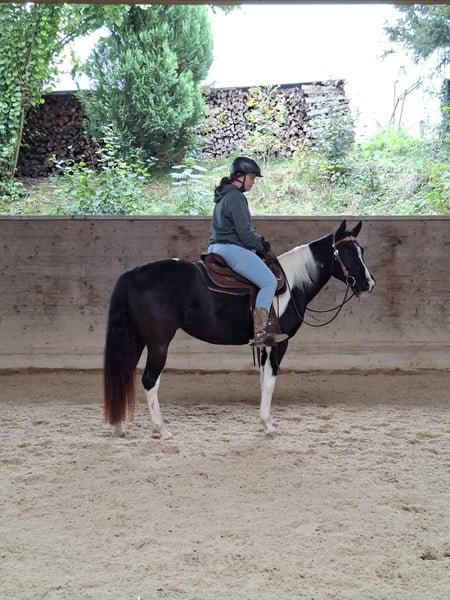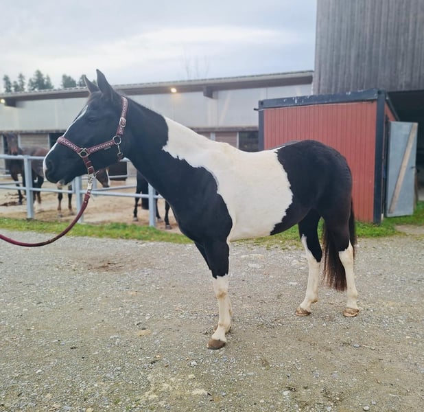 Mit schwerem Herzen suche ich für meine bald 4-jährige Paint Horse Stute „DancingMSHollywood“ (Holly) ein liebevolles neues Fünf-⭐️-Zuhause. 🌿 Wie ihr Name schon verrät, ist Holly eine junge Stute mit viel Ausdruck, Charme und Persönlichkeit. Ihr freundliches Wesen und ihre Intelligenz stechen sofort ins Auge. Ich habe Holly selbst gezogen – aus meiner Stute Steppin Miss Colonel und dem tollen Hengst Dancing Boys Okie. Mit ihrer wunderschönen Zeichnung ist sie nicht nur optisch ein echter Blickfang, sondern überzeugt auch durch ihr liebevolles, neugieriges Wesen. ✨ Über Holly: - bald 4 Jahre jung, angeritten und lernt täglich Neues dazu - neugierig, menschenbezogen und sehr verschmust (manchmal vergisst sie dabei, wie gross sie schon ist 😉) - kennt Kinder, Hunde, Katzen und den Alltag auf dem Bauernhof - steht aktuell in einer kleinen Offenstallgruppe mit 2 anderen Stuten - während des Beritts (bei Ben Fischer) war sie Boxenhaltung gewohnt - läuft barhuf, was bisher bestens funktioniert - braucht eine konsequente, aber sehr feine und liebevolle Hand, die ihr den Weg zeigt Holly schenkt ihr Herz ganz – wenn du sie einmal gewonnen hast, hast du eine treue Gefährtin fürs Leben. 🩵 Sie liebt Nähe und Zuwendung, manchmal etwas stürmisch, aber immer ehrlich und voller Vertrauen. 📜 APHA-Papiere vorhanden 📍 Standort: Kanton Thurgau, Schweiz 💰 Preis: ca. CHF 10‘🥕🥕🥕 – Platz geht klar vor Preis! Für mich muss das Gesamtpaket stimmen – mir ist wichtig, dass Holly in Hände kommt, die sie mit Geduld, Liebe und Herz fördern. ❤️ Wenn dich Holly anspricht, melde dich gerne bei mir. Ich erzähle dir mehr über sie und sende dir bei Interesse auch weitere Bilder oder Videos.