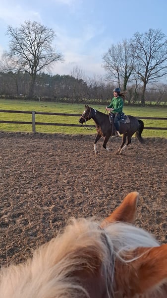 Z wielkim żalem, z powodów czasu i finansów, muszę rozstać się z moją 5-letnią klaczą Painthorse, Malou. - Wiek: 5 lat, około 1,58 m w kłębie - Maść: rąbek/tiefdunkelbraun z białą plamą na szyi i grzywie oraz czterema białymi nogami - Potomstwo prestiżowego źrebięcia Painthorse - Bezpośredni potomek klaczy Magic on Ice, ogiera Painthorse - Jeźdzona w stylu westernowym (zarówno bez wędzidła, jak i z wędzidłem) - Doświadczenie w terenie od ziemi; jeździła już w terenie we wszystkich chodach, choć ze względu na wiek wymaga jeszcze więcej pewności siebie - Nieprawidłowość w ustawieniu nóg (rolluje z obu przednich kopyt od zewnątrz do wewnątrz, dlatego potrzebuje podków; specjalistyczne podkowy ortopedyczne nie są konieczne) - Wstępna nauka woltyżerki - U mnie była dalej szkolona według koncepcji horsemanship ProRode - Pochodzi z hodowli Painthorse z Szwajcarii Chętnie oddam Malou osobie, która chciałaby z nią pracować rekreacyjnie. Aktualnie przebywa w małej stadninie w stajence typu open. Akcesoria mogą być dołączone za dodatkową opłatą. W razie potrzeby dodatkowych informacji, zdjęć/wideo lub chęci rozmowy telefonicznej, proszę o kontakt :)