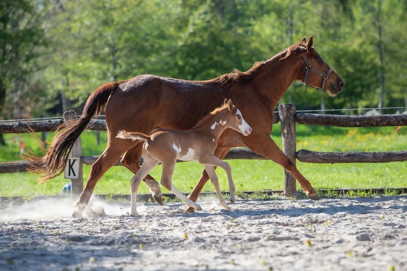 Liebes APHA-Stutfohlen zu verkaufen: Magic Dancer for Gold (14.05.2020) Farbe: Fuchs, Solid Paint. • Panel: 7 N/N Abstammung: Vater: Painted for Gold Mutter: Skylar My MagicDancer Charakter: sozial, freundlich, arbeitswillig, sensibel. Reitet gerne aus, auch alleine, sowohl zu Fuß als auch neben dem Fahrrad. Kann longiert werden, kennt Bodenarbeit und doppelte Linien, ist sattelfest, aber noch nicht durchgeritten. Unter dem Sattel muss das Reiten wieder aufgebaut werden. Hervorragende Zuchtstute, hat 2025 ihr erstes Fohlen bekommen. Dancer lebt in einer kleinen Herde und ist sozial im Umgang mit anderen Tieren. Aufgrund gesundheitlicher Gründe der Besitzerin wird dieses Tier zum Verkauf angeboten. Eventuell kann auch ein maßgeschneidertes Westernsattel übernommen werden. Für weitere Informationen bitte per PN oder Kontaktaufnahme mit Jos unter 0031-(0)6-40586106.