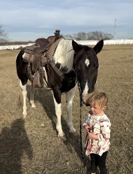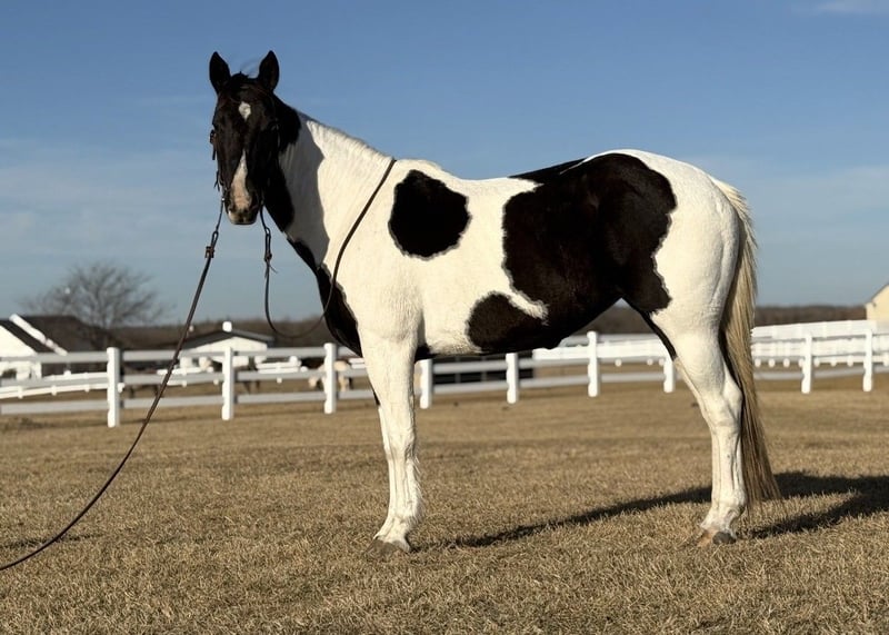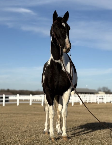 "AVAILABLE ON ONLINE HORSE AUCTION AT www DOT MagicHorseAuction DOT com BIDDING OPEN NOW thru TUESDAY | MARCH 31st! BUY IT NOW AVAILABLE! *Final price will be determined on auction site* CONSIGNOR CONTACT INFO:Trysten Park #630-659-7397 LOCATION:Fairview, Tx" "★★ OREO ★★ 7-Year-Old Paint Mare | Bombproof • Reliable • True All-Around Partner Oreo is everything you could ever want in a horse — dependable, kind, and truly one of a kind. She is the definition of “solid gold,” with a temperament and reliability that are hard to find. There isn’t a bad thing to say about this mare — no quirks, no surprises, just a consistently honest and trustworthy partner. She is the kind you can leave off for months, hop on bareback in a halter, and ride straight down the road without a second thought. Oreo is incredibly forgiving and steady, making her suitable for a wide range of riders, while still being enjoyable and responsive enough for more experienced riders. Out on the trail, Oreo is as bombproof as they come. She has been ridden everywhere — along highways, through downtown, parks, and busy natural areas — and nothing phases her. Bikes, strollers, runners, traffic, and chaos are all just part of the day to her. She crosses rivers, lakes, bridges, and goes under tunnels without hesitation — truly a “drop your reins and go” type of mare. She has been exposed to all kinds of obstacles and tasks. Oreo carries a flag, walks over tarps, navigates bridges and water, and handles new environments with quiet confidence. She is even trustworthy enough to ride completely bridleless while maintaining a soft headset and responding to all cues. On the ground, Oreo is just as special. She’s the first to meet you at the gate, gets along with all horses and livestock, and has excellent manners. She stands well for the vet and farrier, loads, ties, and is easy to handle in every situation. Oreo is a truly exceptional mare with a heart of gold and a lifetime of good experiences behind her. She’s ready to bring confidence, fun, and reliability to her next home. 📽️ Watch her video and come meet this incredible mare in person — she’s as special as they come."