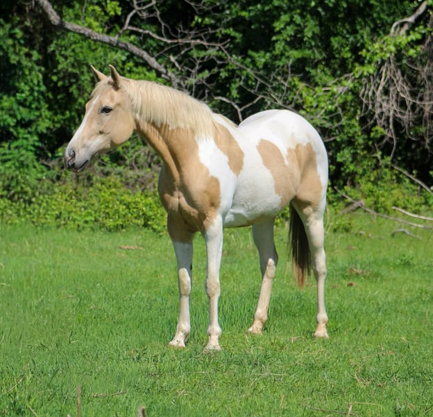 "AVAILABLE ON ONLINE HORSE AUCTION AT www DOT PlatinumEquineAuction DOT com BIDDING OPEN NOW thru SUNDAY | MAY 3RD! *Final price will be determined on auction site* CONSIGNOR CONTACT INFO: MW Horses 254-434-8650 LOCATION: Poolville, TX Jolene is 9 years old palomino paint mare. She stands 14.3 hands tall! She is super fun mare that you can take down the trail with your friends and enjoy! Jolene neck reins good and has a good stop. She will cross water, bridges, logs, and anywhere else you wanna point her to do. W/t/l easy in the arena or outside. She’s been many miles on trails all over. Jolene is great in town. The traffic doesn’t phase her and ready for any adventure you have for her. She is a nice mare looking for a lifelong friend. Jolene can have alittle go under her but if you ask her to stop she listens great. Jolene is looking a dependable rider that likes to ride in groups! Come see Jolene for yourself or we can schedule a FaceTime to meet her! Call or text Makayla with MW Horses at 254-434-8650. Need hauling? We got a list of reliable haulers around the US!