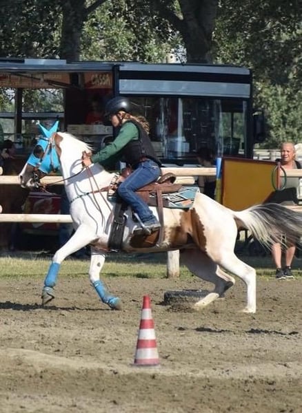 **Annuncio di Vendita: Giumenta Paint Horse** In vendita una splendida giumenta Paint Horse, anno di nascita 2016. Questa meravigliosa cavalla presenta un elegante manto tobiano pezzato sauro che la rende unica e affascinante. Caratteristiche principali: - **Razza:** Paint Horse - **Sesso:** Giumenta - **Anno di nascita:** 2016 - **Manto:** Tobiano sauro - **Altezza al garrese:** 156,00 cm - **Addestramento:** Monta americana tuttofare Questa giumenta ha bisogno di un cavaliere di livello avanzato, ha moltissime qualità ottima per il lavoro in piano e per i pole. La cavalla è molto buona, dolce e sveglia, particolarmente durante le competizioni. Per ulteriori informazioni e per organizzare una visita, non esitate a contattarmi. Non perdete l'occasione di aggiungere questa meravigliosa cavalla alla vostra famiglia equina!