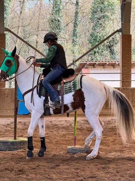 **Verkaufsanzeige: Paint Horse Stute** Zum Verkauf steht eine wunderschöne Paint Horse Stute, Jahrgang 2016. Diese wunderbare Stute hat ein elegantes tobiano fuchsfarbenes Fell, das sie einzigartig und faszinierend macht. Hauptmerkmale: - **Rasse:** Paint Horse - **Geschlecht:** Stute - **Geburtsjahr:** 2016 - **Fell:** Tobiano fuchsfarben - **Stockmaß:** 151,00 cm - **Ausbildung:** Vielseitige amerikanische Reitweise Diese Stute benötigt einen fortgeschrittenen Reiter, sie hat viele Qualitäten, die sich hervorragend für die Dressur und für Stangenarbeit eignen. Die Stute ist sehr brav, süß und lebhaft, besonders während der Wettbewerbe. Für weitere Informationen und zur Vereinbarung eines Besichtigungstermins zögern Sie bitte nicht, mich zu kontaktieren. Verpassen Sie nicht die Gelegenheit, diese wunderbare Stute zu Ihrer Pferdefamilie hinzuzufügen!