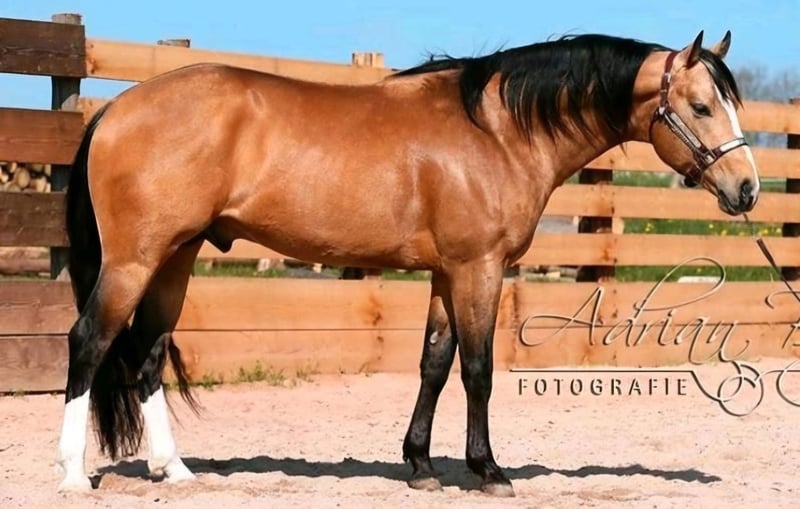 Eine Paint Horse Bukskin Stute mit toller Zeichnung, hervorragends Gebäude und einem besonderem feinem Köpfchen.