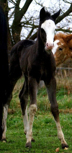 Absolute Schönheitskönigin, dunkel, 4x weiß, blaue Augen, wächst im Herdenverband mit anderen Fohlen zusammen auf, regelmäßig entwurmt, bei der APHA registriert, volle Papiere, für Sport, Zucht oder Freizeit
